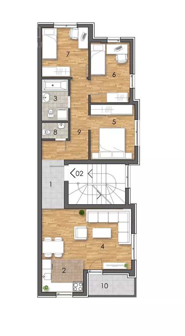 - Prostorije: kupatilo, toaleti (2), terasa