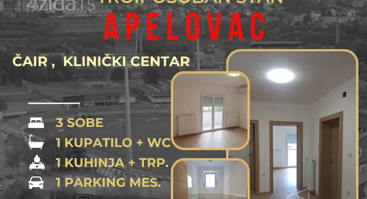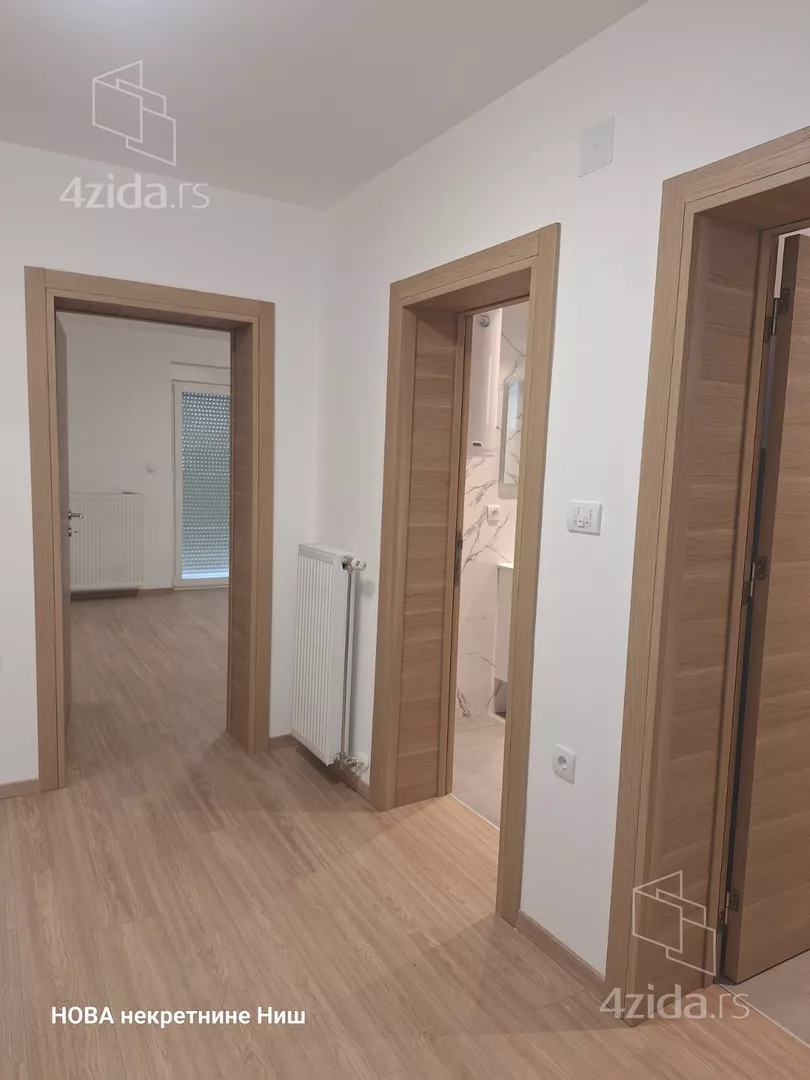 NOV, izuzetno funkcionalan stan, u novoj zgradi, iznad Čaira. Stan je po strukturi troiposoban uknjižene površine 68 kvm, na prizemlju. Sastoji se od ulaznog hodnika, trpezarije sa kuhinjom, tri sobe, kupatila i toaleta . Stanu pripada I deo dvorišta površine 15 kvm na koje se izlazi iz trpezarije, I koje je ograđeno aluminijimskom ogradom poplačano behatonom. Stambeni objekat je useljiv, gradjen po svim standardima i pravilima. U cenu stana uračunata je pripadajuća podrumska prostorija I jedno parking mesto. Odličan je za stanovanje I život. U samom komšiluku je osnovna škola, a od zgrade se nalazi u neposrednoj blizini Medicinska škola, Klinički centar, ,...Stan je moderan i useljiv odmah,.