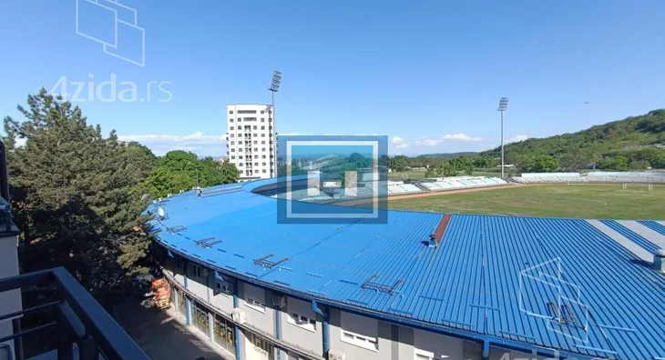 Četvrtasta terasa sa otvorenim pogledom na STADION – bez zgrada ispred, bez zaklanjanja. Uživajte u zalasku sunca, utakmicama i miru sa visine.