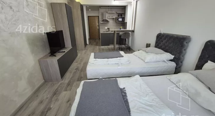 Stan je kompletno opremljen – sve što vam je potrebno za život već se nalazi u stanu: kuhinjski elementi, nameštaj, bela tehnika, posuđe, posteljina... samo donesite lične stvari i uselite se!