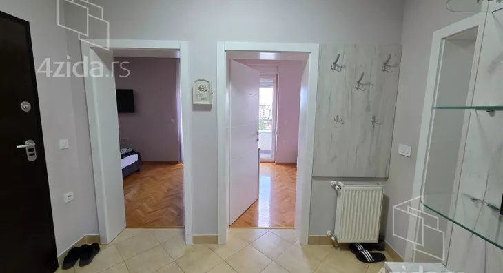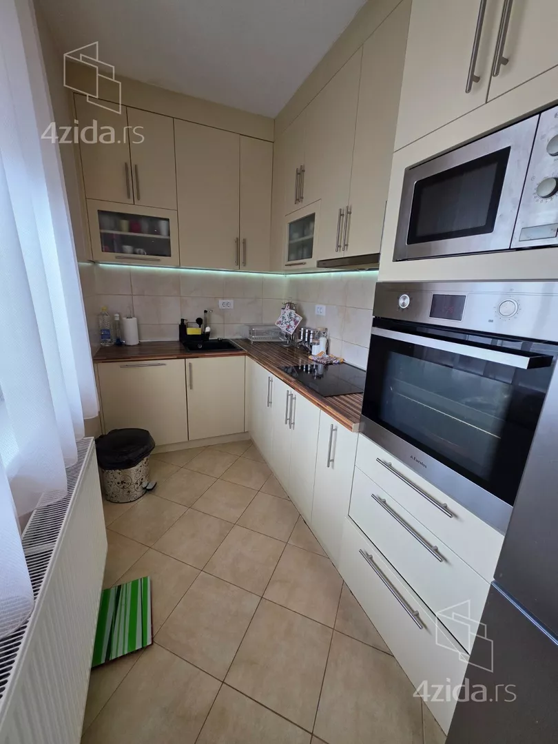 - Opremljenost: Namešteno - internet, TV, klima, veš mašina, kuhinjski elementi, sudo mašina, frižider, zamrzivač, šporet, rerna, ležaj, plakar, ugradni plakar