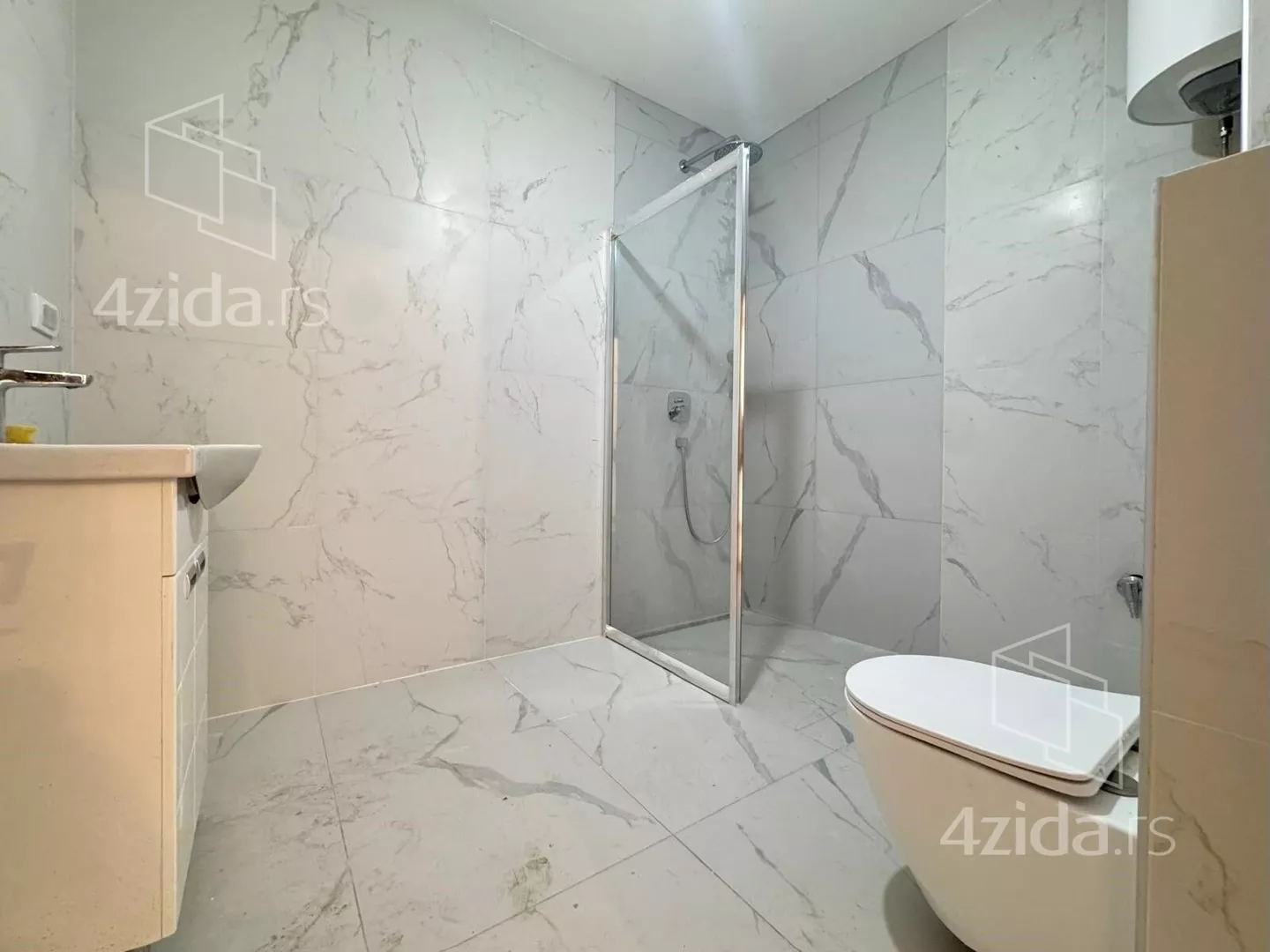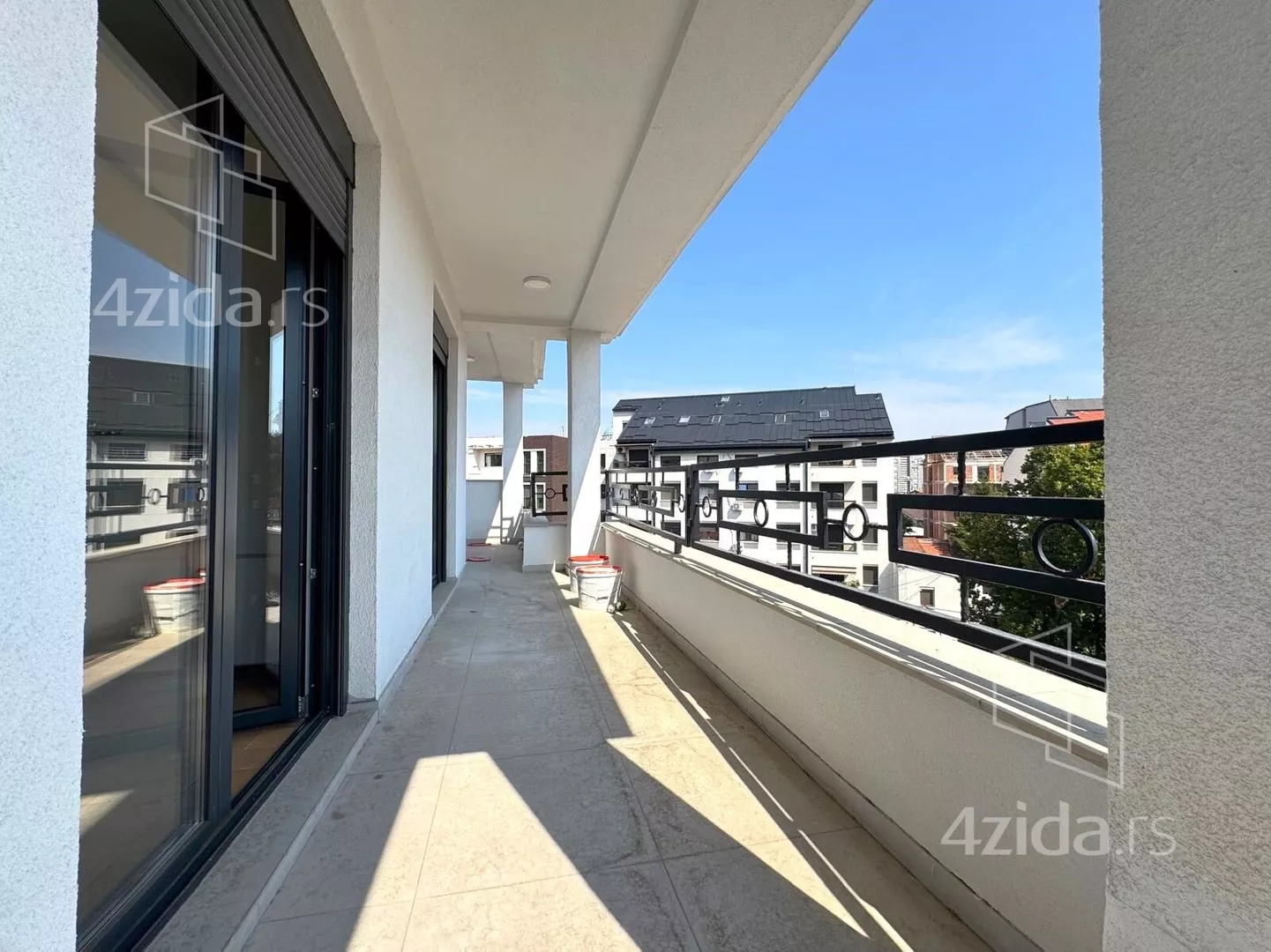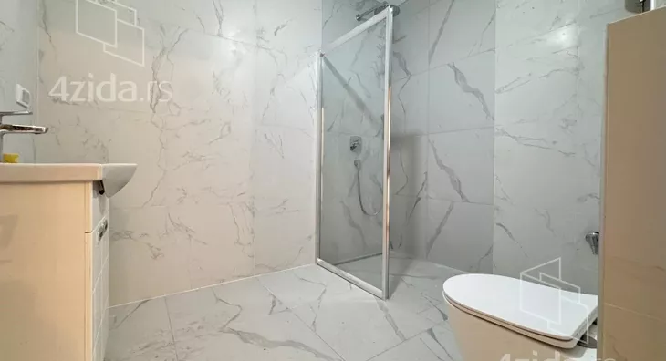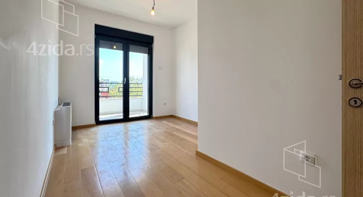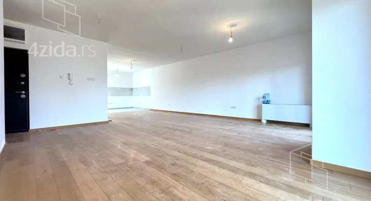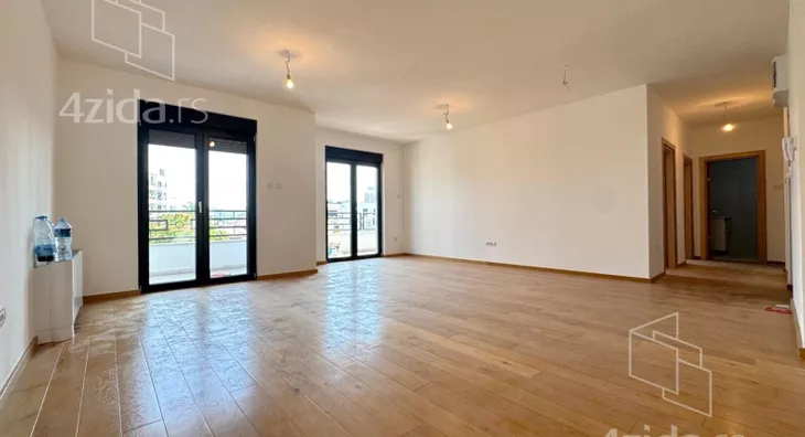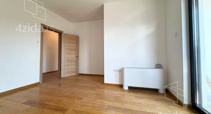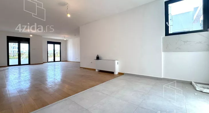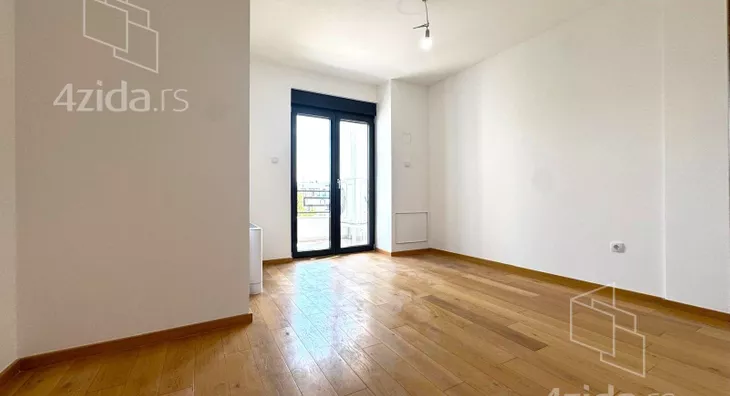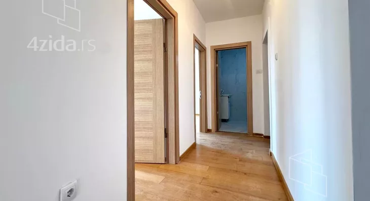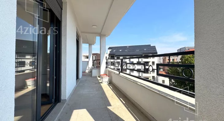 Četvorosoban, svetao, u zgradi na liftom, upisanih 88,37m2, a sa terasom mereno 124m2. Čine ga prostran dnevni boravak na koji se nastavlja kuhinjsko-trpezarijski prostor, tri spavaće sobe, kupatilo, toalet i terasa od 36m2. Zgrada ima lift, mali broj stanova. Grejanje je na struju.