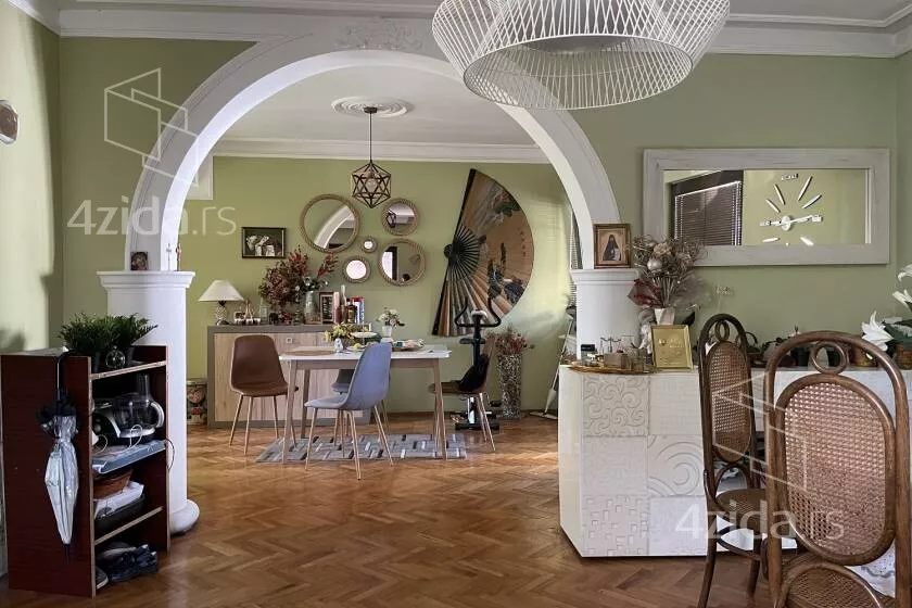 Stan se sastoji od 3 spavaće sobe, velike dnevne sobe, kuhinje, trpezarije, hodnika, kupatila, tri terase kao i podruma od 10m2. Stan je prostran i vrlo svetao, orijentisan je na sve 4 strane sveta. Pogodan je za porodice sa decom. Grejanje je na gas.