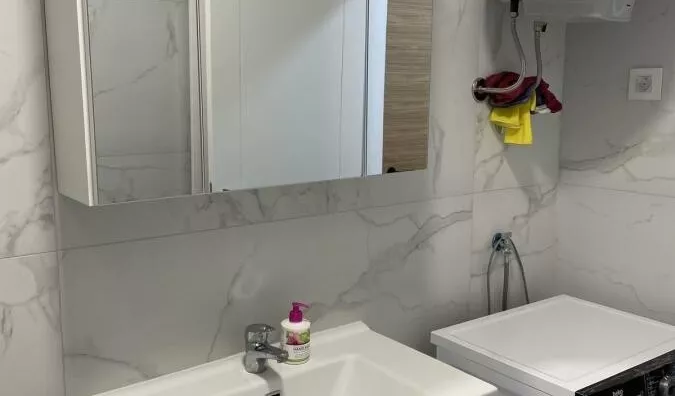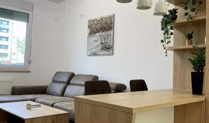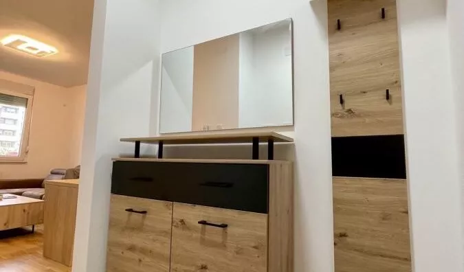 - Opremljenost: Namešteno - internet, TV, klima, veš mašina, sudo mašina, frižider, rerna, ležaj, plakar