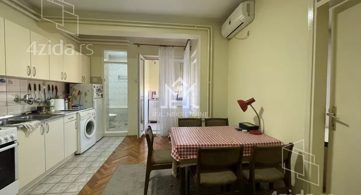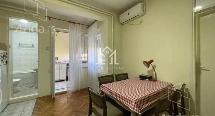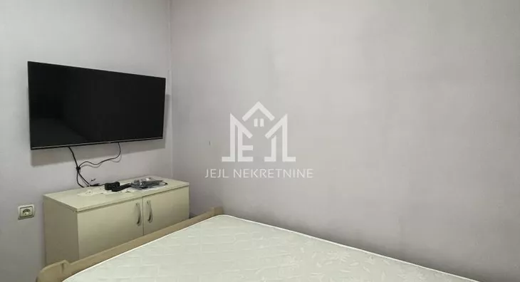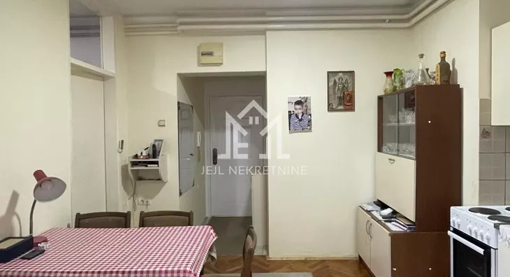 Raspored je odličan: pri ulasku se nalazi hodnik, iz hodnika se ulazi u veliku prostoriju koja sada služi kao kuhinja sa trpezarijom. Iz te prostorije se ulazi u odvojenu spavaću sobu, kao i u kupatilo, a postoji i izlaz na terasu. PVC stolarija je zamenjena, a elektro i vodoinstalacije su menjane pre tri godine.