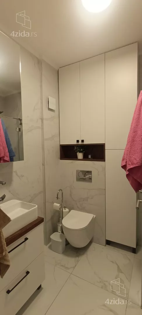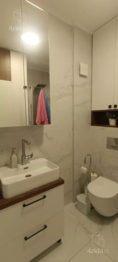 - Opremljenost: Namešteno - internet, TV, klima, veš mašina, kuhinjski elementi, sudo mašina, frižider, zamrzivač, šporet, rerna, ugradni plakar