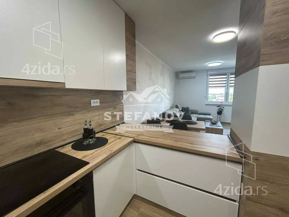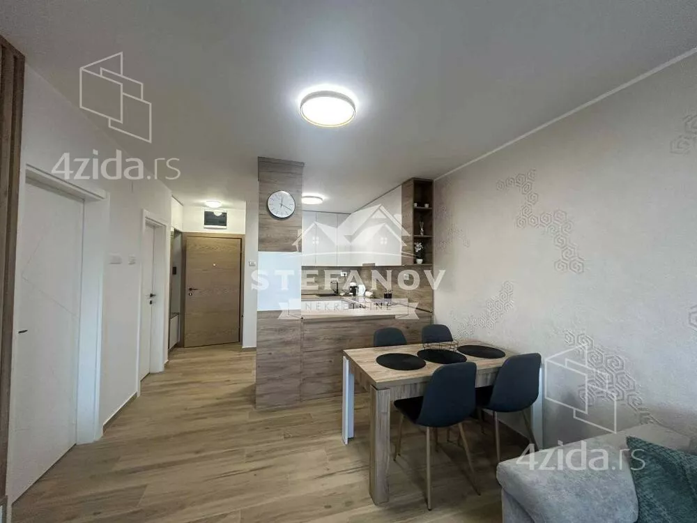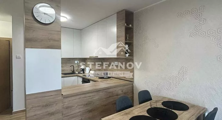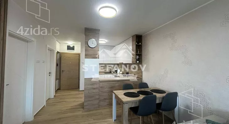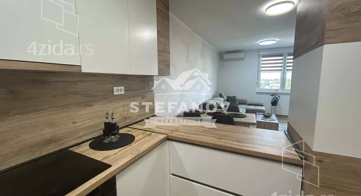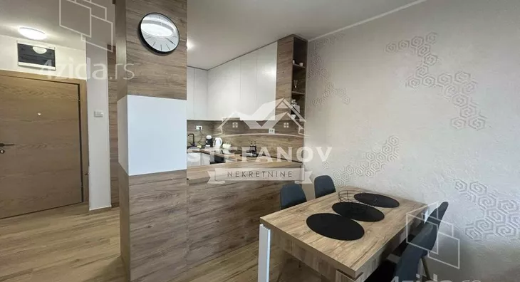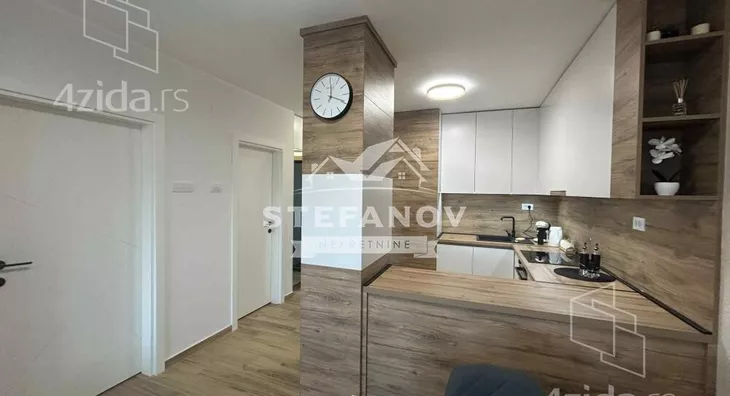 Moderno opremljen, dvosoban stan-apartman površine 45 m2 u novogradnji na idealnom III spratu zgrade sa liftom. Sastoji se od dnevnog boravka sa kuhinjom i trpezarijom, spavaće sobe, kupatila i terase. Grejanje podno na GAS, stolarija PVC sa roletnama i komarnicima (salamander stolarija). Stan izuzetno svetao, pažljivo uređen, funkcionalnog rasporeda. Kompletan nameštaj koji je rađen po meri i bela tehnika su uračunat u cenu. Registrovan kao apartman sa 4*, sa mogućnošću nastavka bavljenja iste delatnosti. Stan, kao i cela zgrada pokriveni su videonadzorom. U dvorištu zgrade nalazi se i parking mesto koje je takođe uračunato u cenu. Zgrada useljena 2025. godine i nalazi se izuzetnoj lokaciji u blizini, škola, vrtića, marketa, bolnice, pijace, TC BIG...Uknjižen 1/1