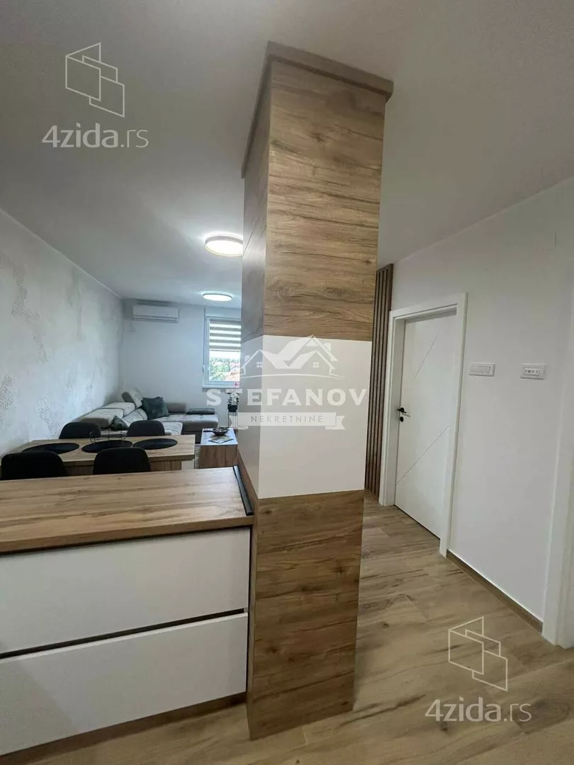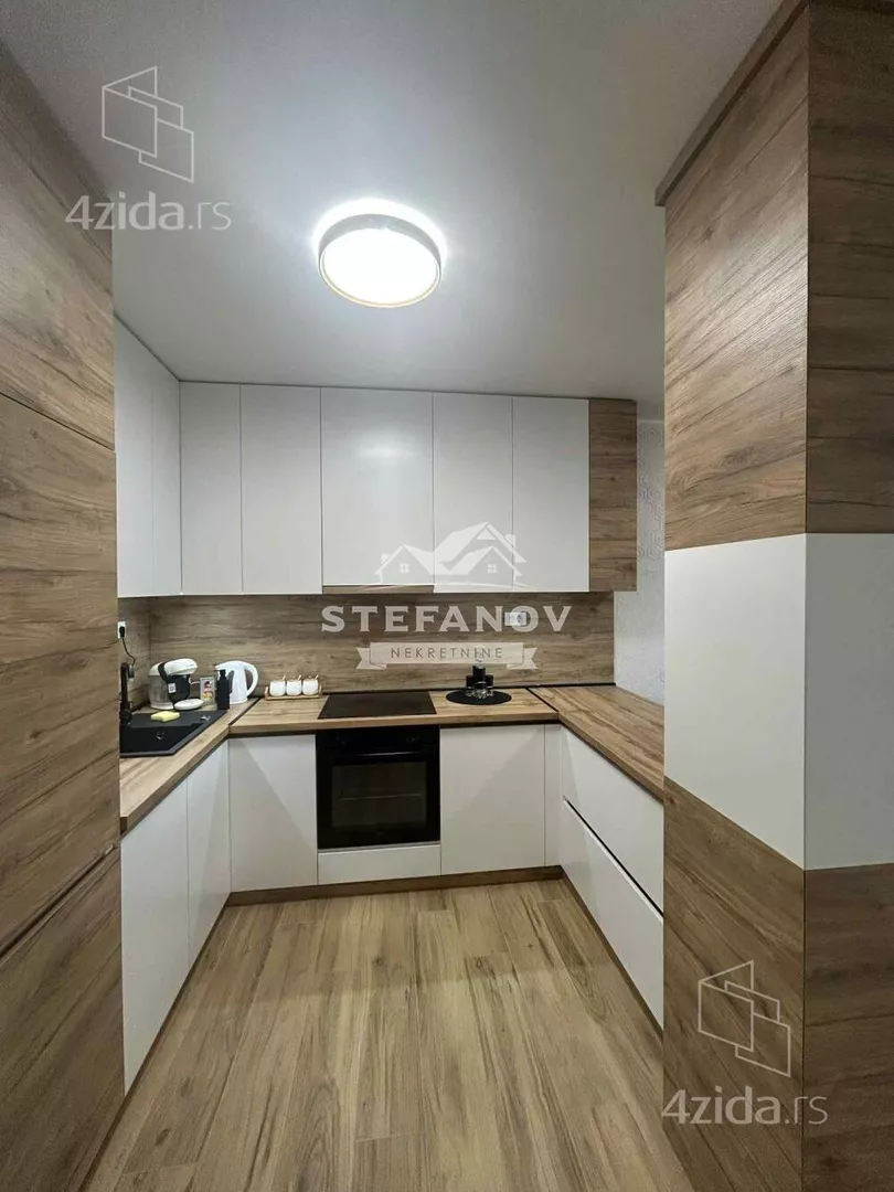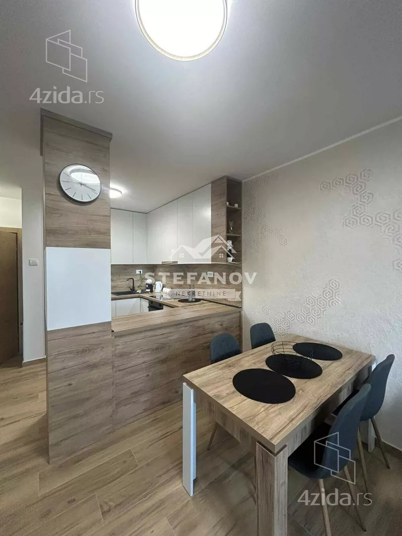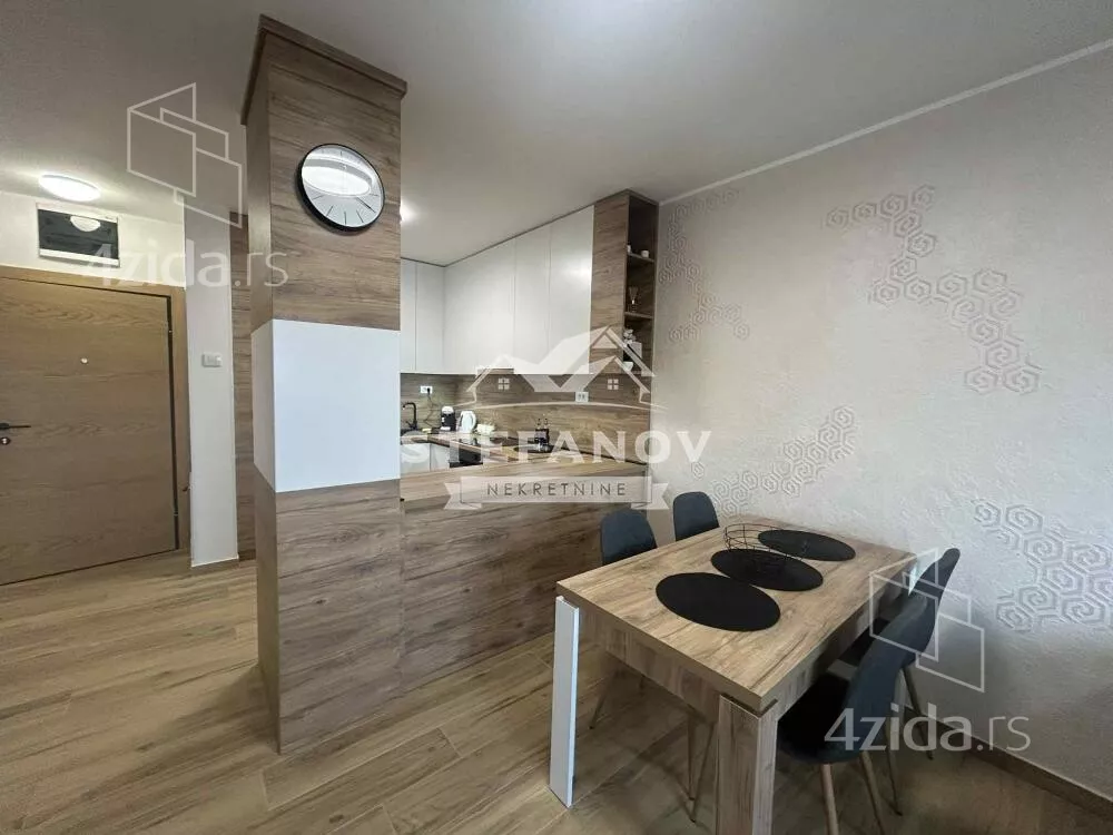 Moderno opremljen, dvosoban stan-apartman površine 45 m2 u novogradnji na idealnom III spratu zgrade sa liftom. Sastoji se od dnevnog boravka sa kuhinjom i trpezarijom, spavaće sobe, kupatila i terase. Grejanje podno na GAS, stolarija PVC sa roletnama i komarnicima (salamander stolarija). Stan izuzetno svetao, pažljivo uređen, funkcionalnog rasporeda. Kompletan nameštaj koji je rađen po meri i bela tehnika su uračunat u cenu. Registrovan kao apartman sa 4*, sa mogućnošću nastavka bavljenja iste delatnosti. Stan, kao i cela zgrada pokriveni su videonadzorom. U dvorištu zgrade nalazi se i parking mesto koje je takođe uračunato u cenu. Zgrada useljena 2025. godine i nalazi se izuzetnoj lokaciji u blizini, škola, vrtića, marketa, bolnice, pijace, TC BIG...Uknjižen 1/1