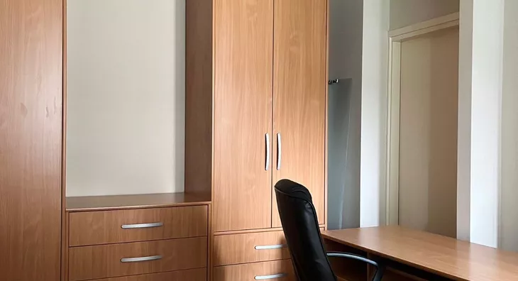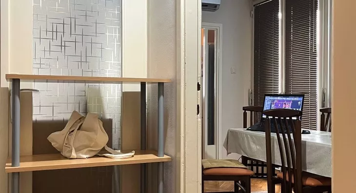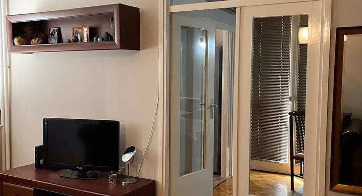 - Opremljenost: Namešteno - internet, interfon, klima, kuhinjski elementi, mikrotalasna rerna, ležaj, plakar, ugradni plakar