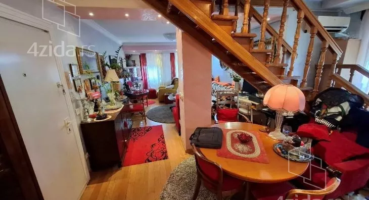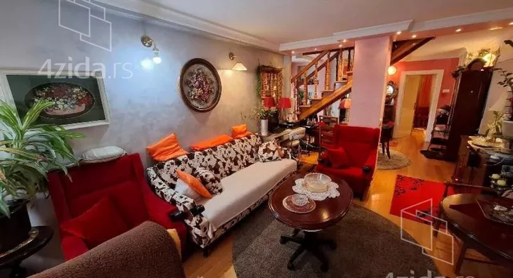 Stan se sastoji od dve etaže, ima četiri spavaće sobe i dva kupatila, idealno raspoređenih za veću porodicu. Grejanje je centralno.