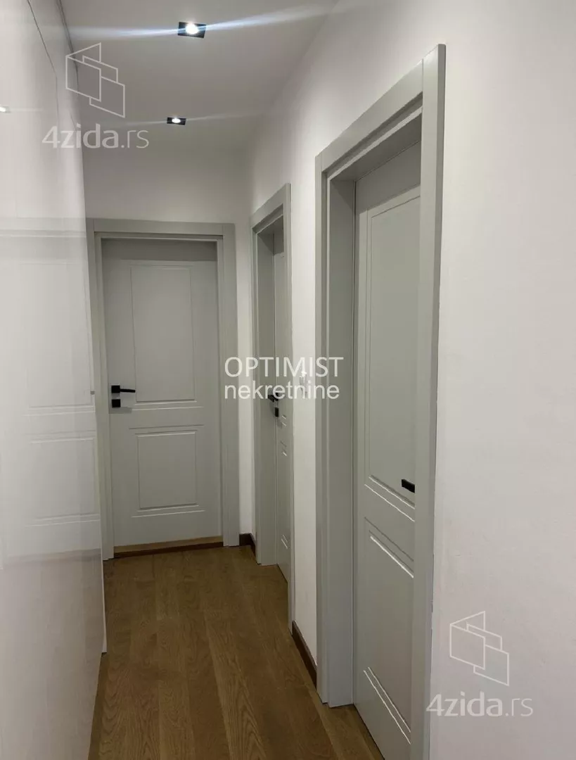 Optimist nekretnine Vam nude, perfektan, funkcionalan, svetao, luksuzan i odmah useljiv trosoban stan, zapadno orijentisan, na četvrtom od pet spratova nove, uredne i odlično održavane zgrade sa liftom, sazidane 2022. godine, u mirnoj i tihoj ulici Dragana Nikitovića (bivšoj Osiječkoj), u samom "centru" Banovog brda, u neposrednoj blizini Požeške, a daleko od buke. Stan je uknjižen na ime vlasnika 1/1, na 81m² korisnog prostora, bez tereta i zabeležbi, tako da su osim keš kupaca dobrodošli i kreditni. Prostorije: predsoblje, dnevni boravak sa kuhinjom i trpezarijom, dve spavaće sobe, kupatilo, gostinski toalet i terasa. Stanu pripadaju dva parking mesta koja ulaze u oglašenu cenu. Grejanje je na gas, po potrošnji. Infostan oko 6000 dinara. Potpuno nova kuhinja, opremljena najkvalitetnijom belom tehnikom, uključena je u cenu stana, kao i plakari sa osvetljenjem u sobama i veliki orman u hodniku. S obzirom na to da se stan nalazi na idealnom mestu, u blizini se nalaze svi objekti i sadržaji neophodni za prijatan i kvalitetan svakodnevni život, uključujući i najpoznatija izletišta u gradu, Adu Ciganliju i Košutnjak. Na samo stotinak metara od zgrade nalaze sa stajališta mnogobrojnih autobuskih i tramvajskih linija GSP-a, koje Banovo brdo povezuju sa svim delovima grada. Stan je u perfektnom stanju tako da nisu potrebna nikakva ulaganja. Izuzetna prilika za kupovinu luksuznog stana, odličnog rasporeda na jednom od boljih mesta u gradu. Idealan za porodicu. Hvala što ste izdvojili vreme za naš oglas! Agencijska provizija 2%