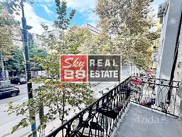 2,0 Centar , Stari grad , Skadarlija , Dzordza Vasingtona , 87m2 ( tri terase 28m2 ) , 59 m2 uknjizena kvadratura , 1 /3 , eg / struja , bez lifta , autentican salonski stan , delimicno renoviran , dvostrano orijentisan ( istok - jug ) , svetao , Hrastov parket , Italijanska keramika , prvoklasne sanitarije , izvorna , reparirana drvena stolarija ( malim delom Pvc stolarija ) , visina plafona 3,2m , stan sa dva ulaza , predratna zgrada , gradnja 1935. godine , uredan , lepo odrzavan ulaz zgrade , fasada izvorna ... neposredna blizina Bajlonijeve pijace , Skadarlije , škola , prodavnica , restorana , odmah useljiv . Pogodan kako za stanovanje , tako i za poslovni prostor . Struktura - ulazni centralni salon , dnevna soba sa izlazom na terasu 4m2 orijentisana ka ulici , kuhinja , kupatilo , hodnik sa izlazom na terasu 24m2 orijentisana ka dvoristu . Agencijska provizija 2%