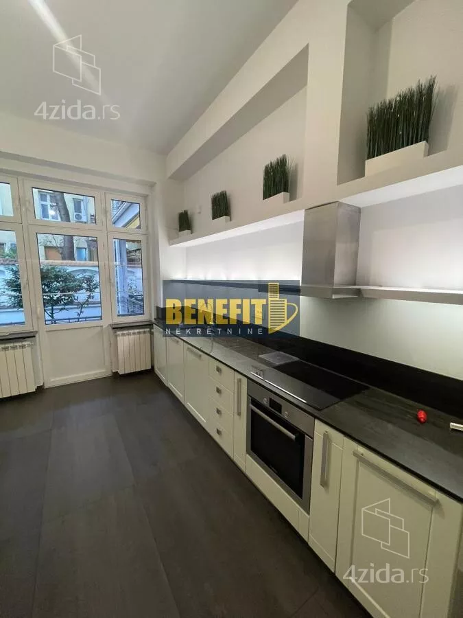 Nešto izuzetno retko i specifično na tržištu: klasični salonac, sa prostrane 4 sobe od kojih svaka može biti koncipirana i kao dnevna i kao spavaća, izuzetno velike kuhinje, potpuno renovirane ove godine, dve devojačke sobe, dva velika kupatila, ostave.