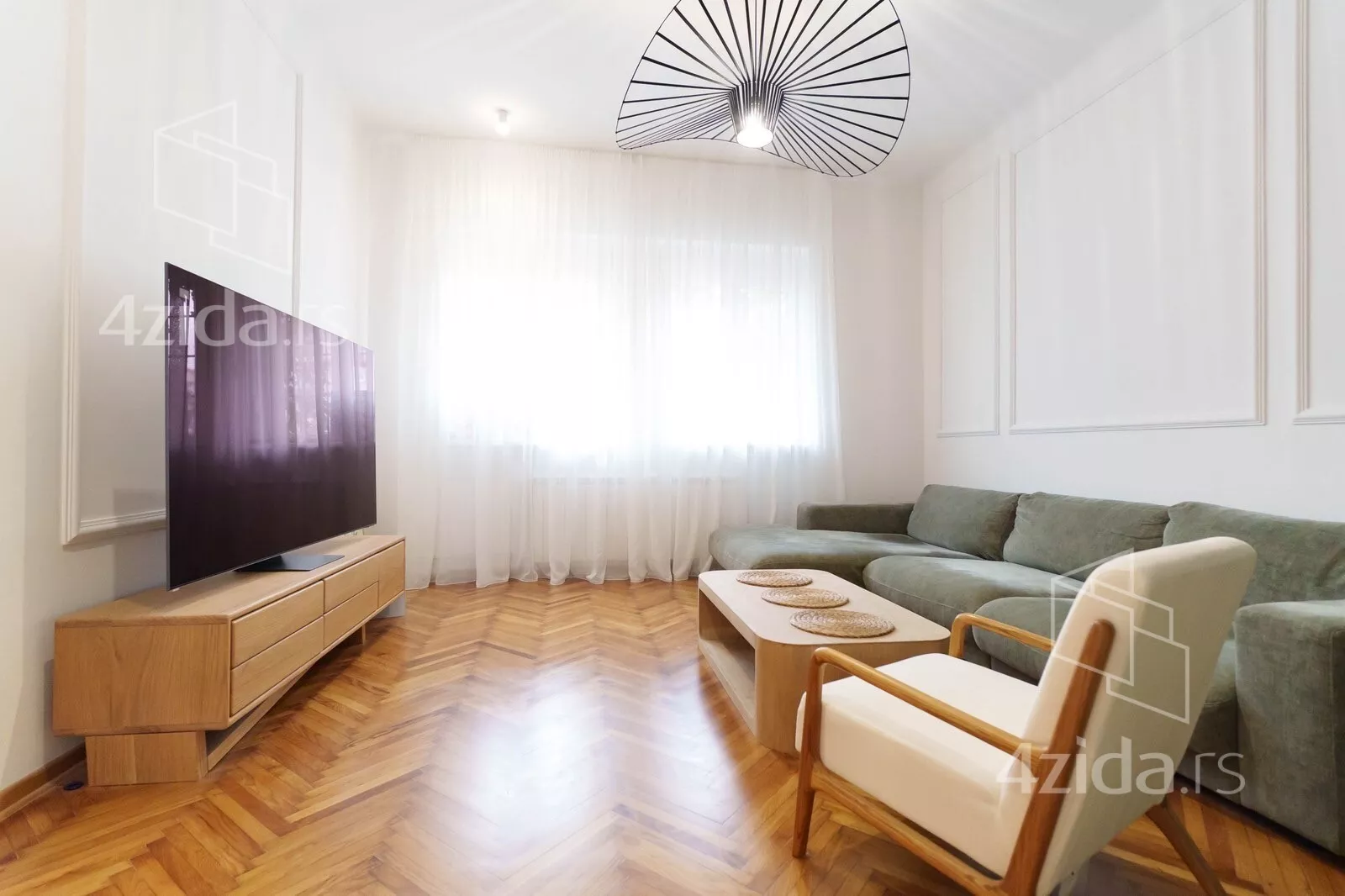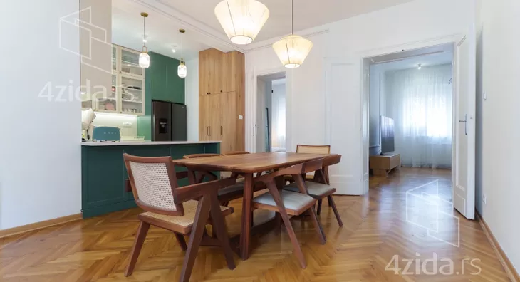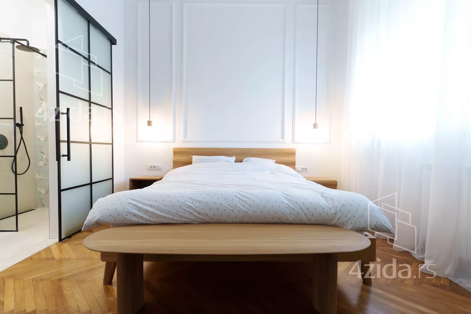 Stan poseduje 3 spavaće sobe, od kojih su dve master sa sopstvenim kupatilom, 2 kupatila, toalet, prostranu dnevnu sobu, kuhinju sa trpezarijom i prelepu terasu za svakodnevno uživanje. Kompletno renoviran u saradnji sa poznatom arhitentonskom firmom iz Beograda. (nameštaj je rađen po meri).