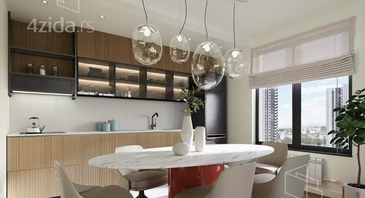 zgrade, sa pogledom prema Kuli Beograd. Sastoji se od dnevne sobe i kuhinje i