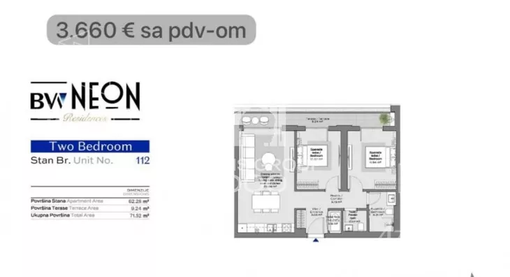 ✅ Direktna prodaja stanova u Beogradu na vodi – bez provizije! ✅ Plaćanje na rate do završetka izgradnje! ✅ Maxis Group doo – Partner BELGRADE WATERFRONTA 🔹 Broj u registru posrednika: 1850 🚗 jedno garažno mesto je obavezno /cena 25.500 evra sa PDV-om 🏙️ BW NEON – Dvosoban stan na 1. spratu u luksuznom kompleksu pored reke 🔹 Zgrada i lokacija: U ponudi je moderan i funkcionalan dvosoban stan u prestižnoj zgradi BW NEON, koja se nalazi u sklopu ekskluzivnog Riverline kompleksa, na jednoj od najpoželjnijih lokacija u Beogradu. U neposrednoj je blizini Galerije, buduće Gastro pijace, škole, pešačkog mosta ka Novom Beogradu i pasarele ka Senjaku. 📐 Površina: 47.92 m² 🏢 Sprat: 1 💰 Cena sa PDV-om: 206.888 € 💼 Agencijska provizija: 0% 🛏️ Struktura stana: Dnevni boravak sa trpezarijom i kuhinjom Jedna spavaća soba Kupatilo + gostinski toalet Vešernica (prostorija sa bojlerom, mašinom za pranje i sušenje veša) Uređenom i bezbednom dvorištu, savršenom za miran život ✨ Idealna investicija za: ✔ Porodični život u luksuznom ambijentu ✔ Stan za život u centru grada – sa svim sadržajima nadohvat ruke 🔑 MAXIS GROUP DOO BEOGRAD – Ovlašćeni partner Belgrade Waterfront-a 🔹 Broj u registru posrednika: 1850 🔹Nove zgrade u ponudi: BW Alegra, BW Diva, BW Bristol, BW Sava, BW Vizia, BW Rima, BW Thalia, BW Victoria, BW Nota, BW Bella, BW Bonaca, BW Dolche, BW Hudson, BW Perla, BW Riviera.BW NEON, BW HUDSON, BW EMERALD 📍 Hercegovačka 15/303, BW Simfonija 2, III sprat 📞 011... (prikaži broj telefona) | 📱 060... (prikaži broj telefona)