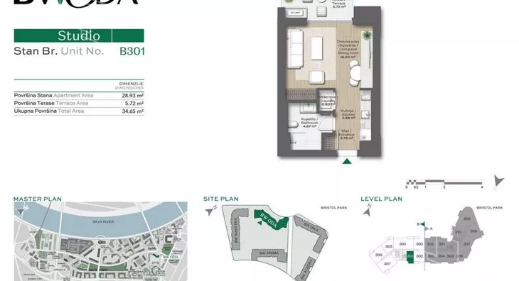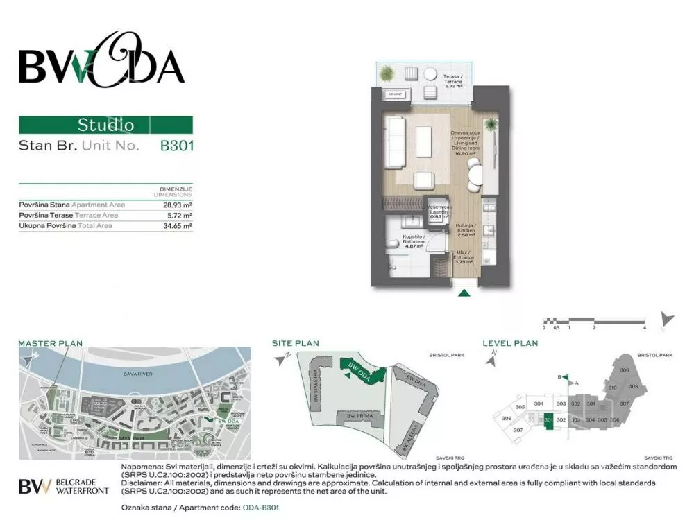 BW Oda se nalazi na prestižnoj lokacija između Bristol parka i Savskog trga, na korak od Sava Promenade, Terazija, Kalemegdana i Slavije. Stanovi nude terase, visoko zastakljenje i obilje prirodnog svetla; enterijeri sa višeslojnim parketom, a kupatila/kuhinje/balkoni obloženi granitnim pločicama. Stan se sastoji od: ulaznog hodnika, prostranog dnevno-spavaćeg dela sa kuhinjom, koji ima izlaz na terasu sa pogledom na mirno dvorište puno zelenila, kupatila i vešernice. Usluge: 24/7 recepcija i obezbeđenje, poštanski prostor, dvospratna garaža, biciklana; lokali i ugostiteljstvo u prizemlju. U blizini su škola, vrtić, savremeni sportski centar i buduća glavna metro stanica. Otplata na 7 rata koje prate faze izgradnje. Mogućnost kupovine garažnog mesta uz doplatu. Prodaja stanova, stanovi Beograd na vodi, Beograd na vodi stanovi, Belgrade Waterfront apartments, Продажа квартир в Белграде Bez posredničke nadoknade za klijente, direktna prodaja!