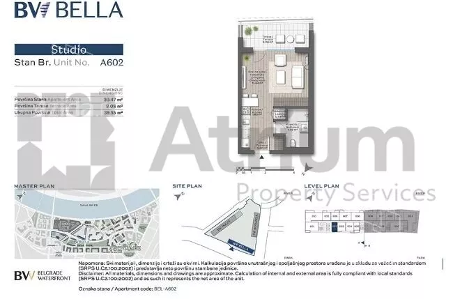 U prilici smo da Vam ponudimo modernu garsonjeru u zgradi BW Bella, površine 39,55 m², smeštena na 6. spratu i orijentisana ka Bulevaru Vudroa Vilsona. Stan je otvorenog koncepta, sa velikim prozorima koji obezbeđuju puno svetlosti i pogled na grad.