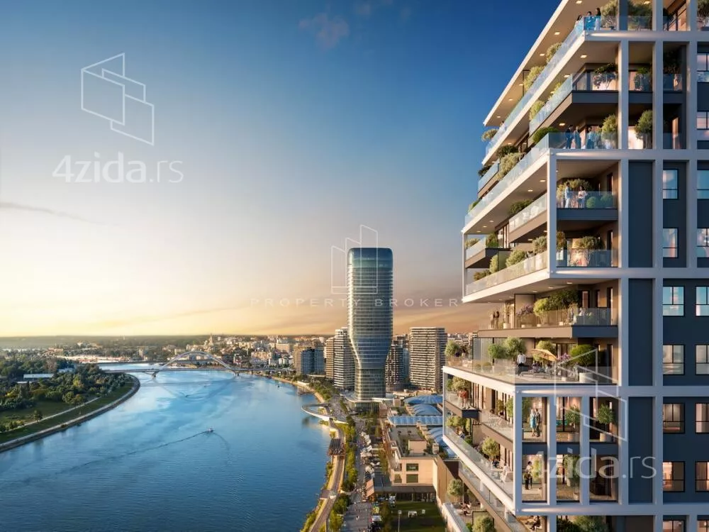 Nudimo Vam stan u premium zgradi BW Lena, koja se nalazi na jednoj od najpoželjnijih lokacija u Beogradu – uz reku, park i sadržaje koji život čine jednostavnijim i prijatnijim. U neposrednoj blizini su Galerija, budući Gastro pijac, škola, ali i pešački most koji vodi ka Novom Beogradu sa jedne strane i pasarela za pešake ka Senjaku, sa druge strane. Stan se sastoji od: ulaznog hodnika, prostrane dnevne sobe sa kuhinjom i trpezarijom, dnevna soba ima izlaz na prostranu terasu sa direktnim pogledom na reku, tri spavaće sobe, radne sobe, dva kupatila, toaleta i vešernice. Jedan od najupečatljivijih elemenata je ekskluzivni bazen i spa centar smešten na mostu, koji arhitektonski povezuje BW ''Lena'' i BW ''Hudson''. Ovaj jedinstveni koncept, prvi takve vrste u okviru Belgrade Waterfront-a, donosi potpuno novo iskustvo opuštanja. Za one koji biraju aktivan stil života, na raspolaganju je moderno opremljena teretana, idealna za jutarnji trening ili večernju rekreaciju. Prodaja stanova Beograd na vodi, bez posredničke nadoknade za kupce! Placanje na 7 rata koje prate faze gradnje. Očekivano useljenje kraj 2028. godine Prodaja stanova, stanovi Beograd na vodi, Beograd na vodi stanovi, Belgrade Waterfront apartments, Продажа квартир в Белграде