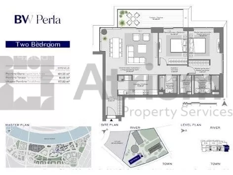 Stan se nalazi na 12. spratu, ima površinu od 118 m² i idealno je orijentisan ka jugoistoku, što mu obezbeđuje obilje prirodne svetlosti tokom celog dana. Iz dnevnog boravka i sa terase pruža se prelep pogled na reku Savu i ekskluzivni kompleks “Terraces”.