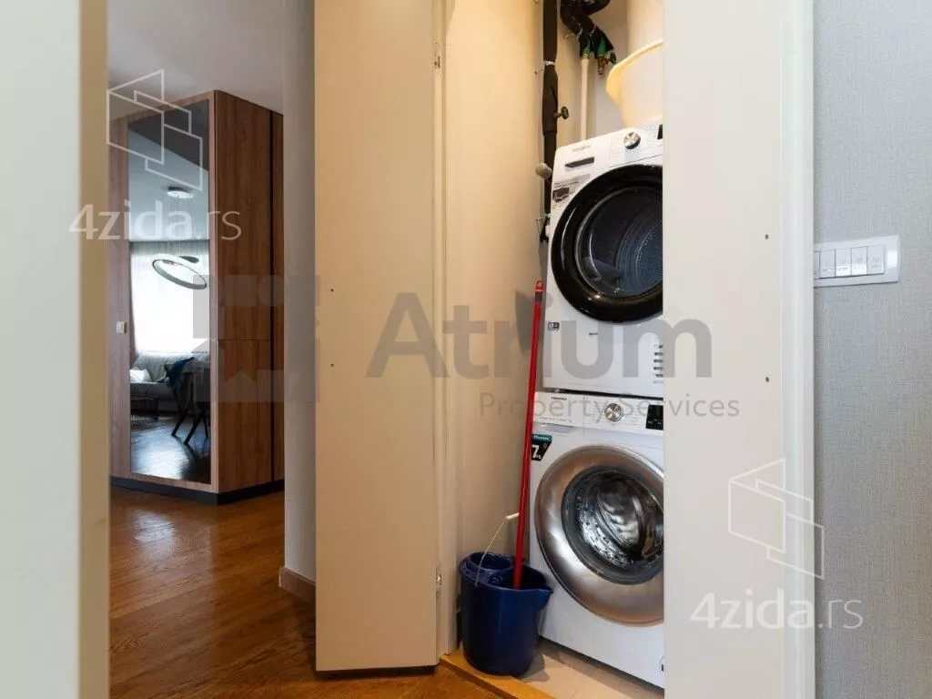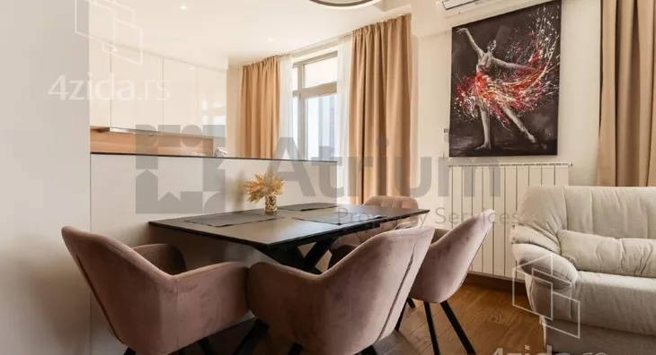 Zgrada Arcadia, u kojoj se stan nalazi, odiše ekskluzivnošću, okružena je zelenim površinama, a u neposrednoj blizini su prestižni TC Galerija, restorani, kafići, šetališta i mnoge mogućnosti za rekreaciju.