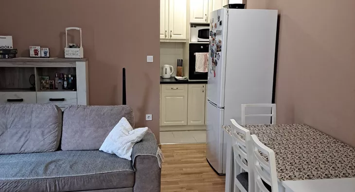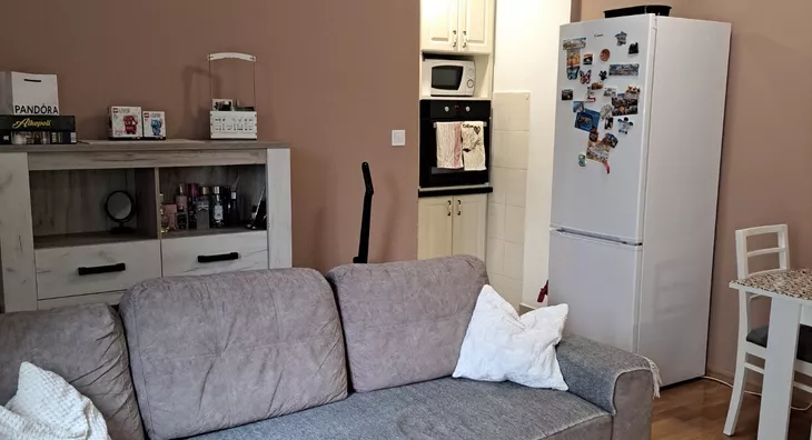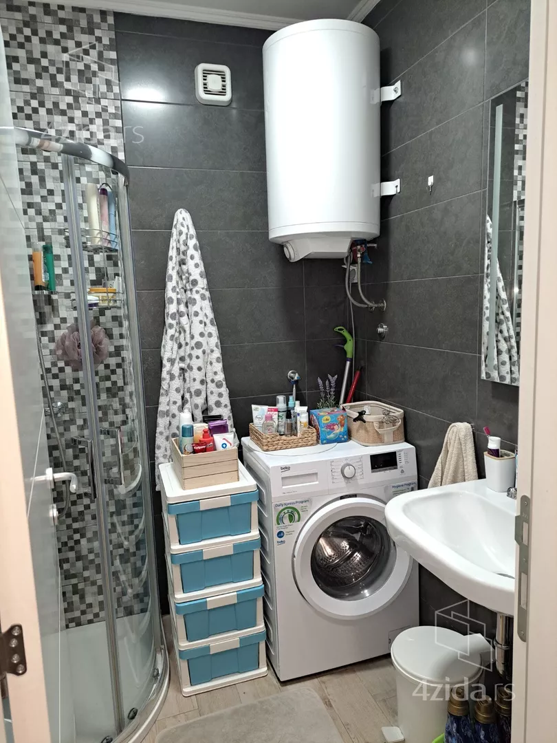 - Opremljenost: Namešteno - klima, veš mašina, kuhinjski elementi, frižider, zamrzivač, šporet, rerna, ležaj, plakar, ugradni plakar