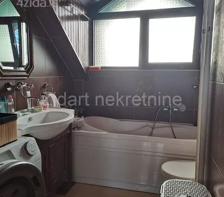 Na drugom nivou je hodnik, dve spavaće sobe, kupatilo i izlaz na veliku terasu koja je natkrivena.
