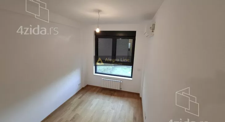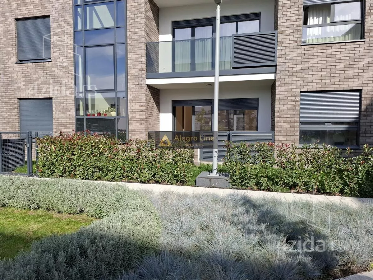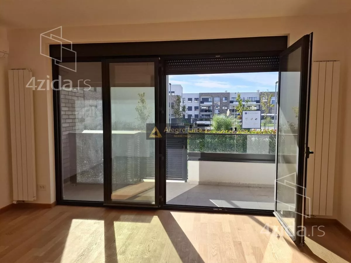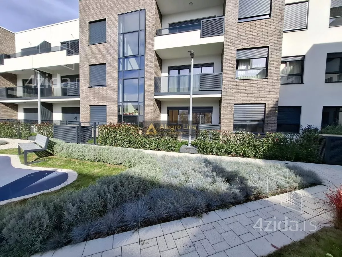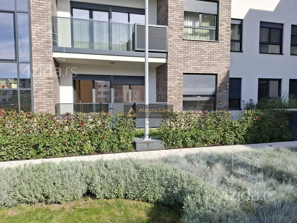 Stan se sastoji od ulaznog hodnika, velike dnevne sobe sa kuhinjom i trpezarijom, dve spavaće sobe, dva kupatila i odvojenog prostora za garderobere . Jedno prostrano kupatilo je opremljeno tuš kabinom, a drugo ležećom kadom. Iz dnevne sobe se preko balkonskih vrata koja se prostiru preko celog zida, izlazi na veliku tersu, a preko nje u baštu koja se proteže celom dužinom stana. Stan je orijentisan dvorišno, a ispred zgrade je lepo uređeno dečje igralište.