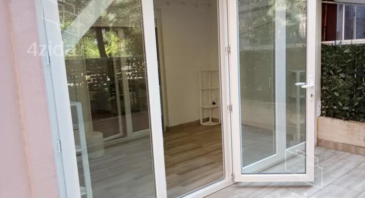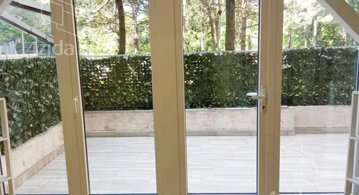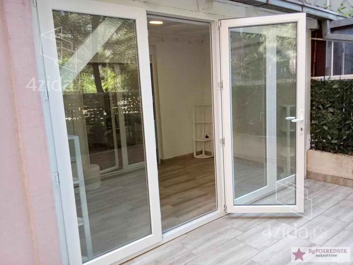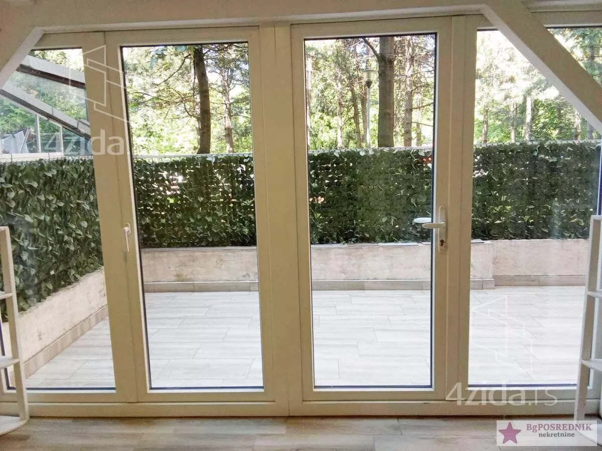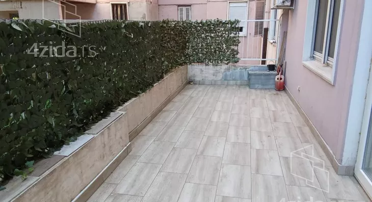 Terasa od 26-m2 (delimično zastakljena 7m2), gleda na dvorište i drveće koje ga okružuje.