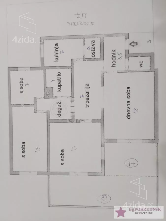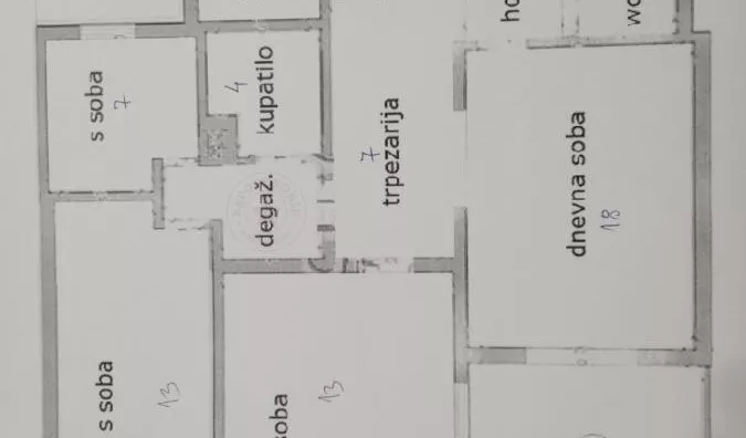 Prostorije: tri spavaće sobe, prostran dnevni boravak sa izlazom na terasu, odvojena kuhinja sa trpezarijom, kupatilo, toalet i ostava.