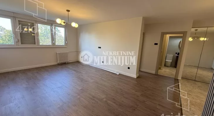 U ponudi je dvosoban stan na odlicnoj lokaciji kod Fontane. Odrzavana zgrada sa novim liftom. Stan je kompletno renoviran i prodaje se sa novom kuhinjom i belom tehnikom. Sastoji se od hodnika,komforne dnevne sobe, trpezarije,ostave,spavace sobe,kupatila i lodje. Uknjizen na vlasnika 1/1 na 58m2 korisne povrsine. Za svaku preporuku!