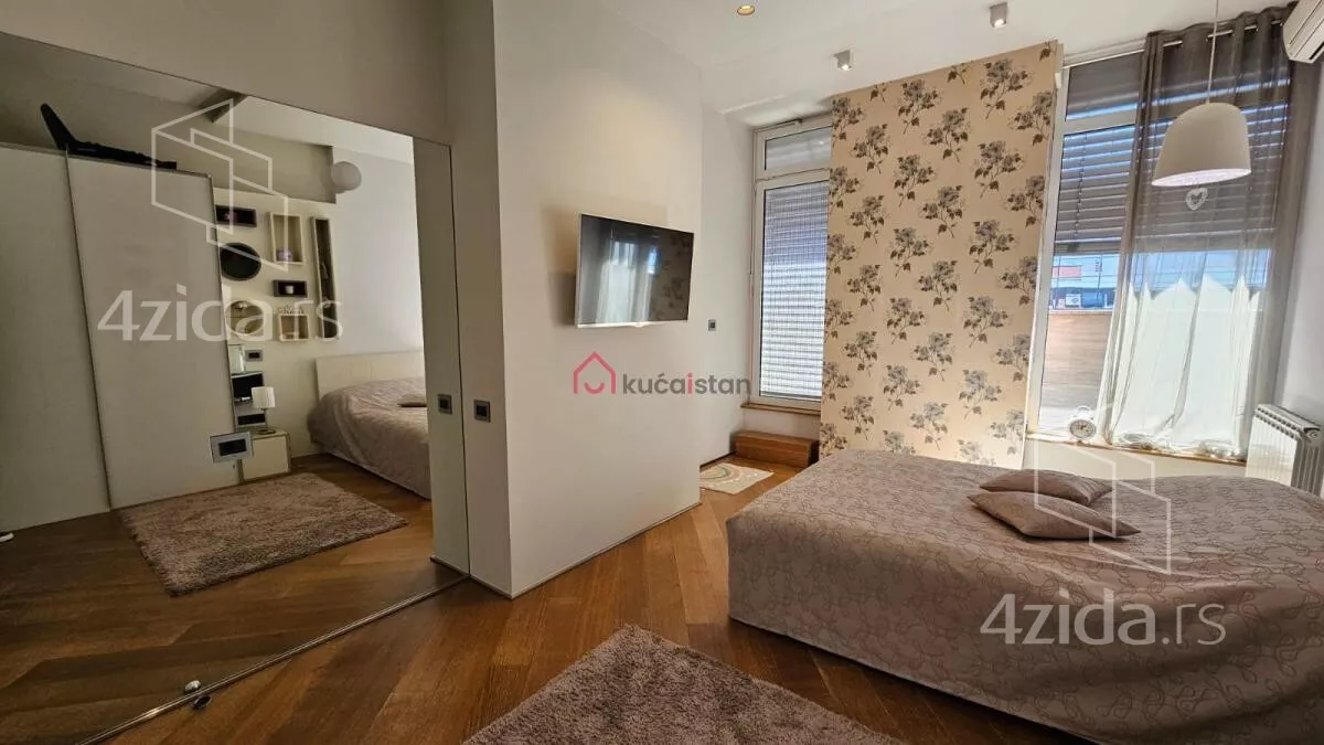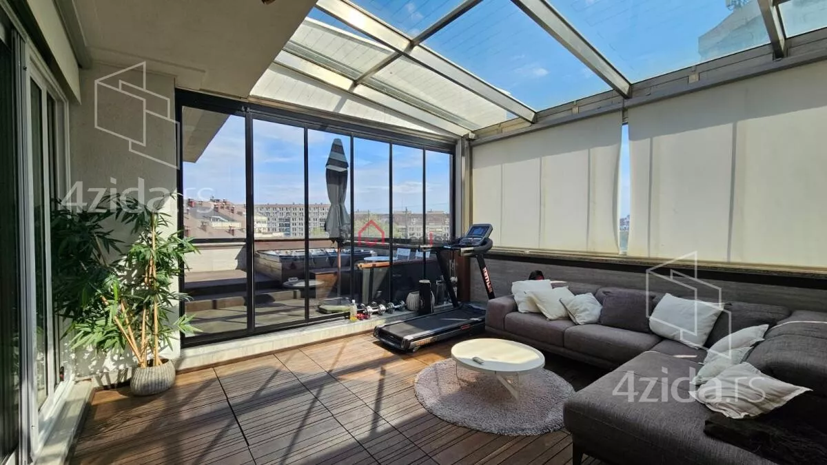Prodaje se luksuzni četvorosobni stan koji kombinuje funkcionalnost, udobnost i moderan dizajn! Dvostrana orijentacija pruža obilje prirodne svetlosti tokom celog dana. Jedna od najatraktivnijih karakteristika je terasa sa podesivim krovom i đakuzijem, savršena za uživanje na svežem vazduhu.