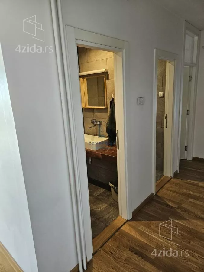 Veliki prozori od poda do plafona obezbeđuju mnogo prirodne svetlosti i prijatan, topao ambijent tokom čitavog dana. Hodnik je opremljen savremenim američkim plakarima koji omogućavaju efikasno iskorišćenje prostora i urednost doma.