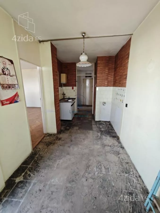 Površinski i strukturno idealan za kompletno renoviranje, što ostavlja mogućnost da budući vlasnik stan uredi potpuno po sopstvenom ukusu. Nalazi se na spratu koji nije poslednji.