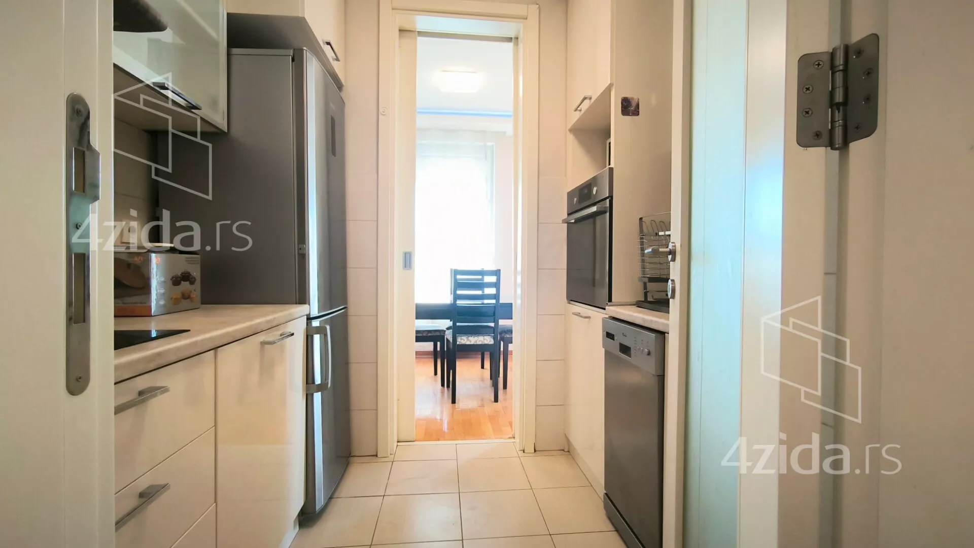 - Opremljenost: Namešteno - internet, TV, klima, veš mašina, kuhinjski elementi, sudo mašina, frižider, zamrzivač, mikrotalasna rerna, šporet, rerna, ležaj, plakar, ugradni plakar