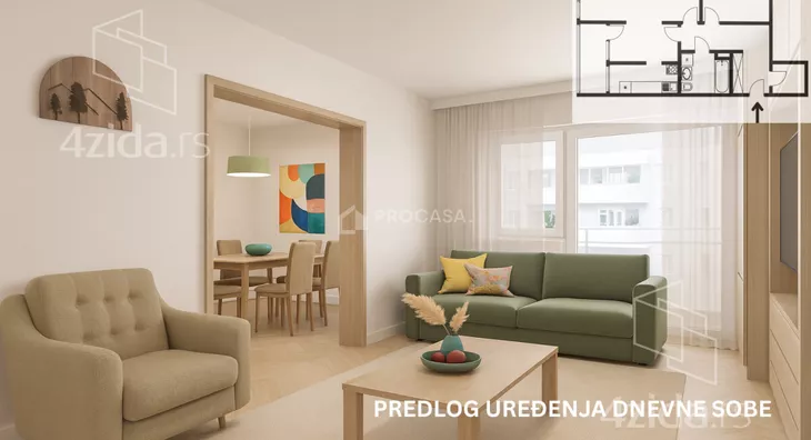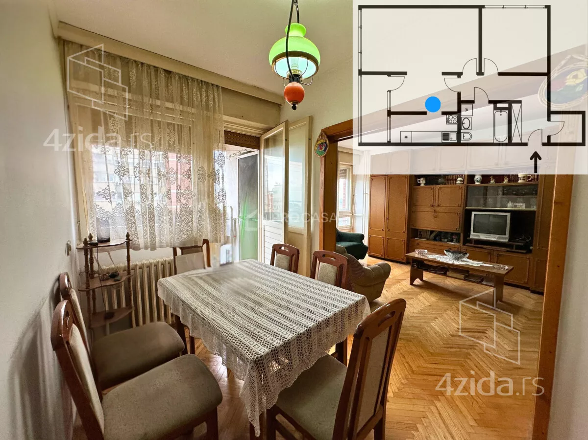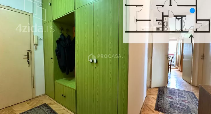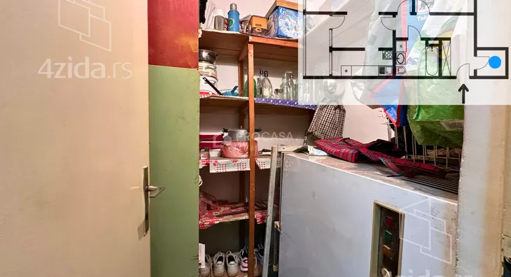 Stan je odličnog rasporeda, iz hodnika se ulazi u sve prostorije. Na ulazu u stan se nalazi prostrana ostava. Niz hodnik sa leve strane je kupatilo, sa desne spavaća soba. Nastavkom niz hodnik se nalaze vrata za ulazak u dnevnu sobu sa desne strane dok se napred nalazi trpezarija iz koje se ide u kuhinju, na prostranu lođu i može se pristupiti dnevnoj sobi.