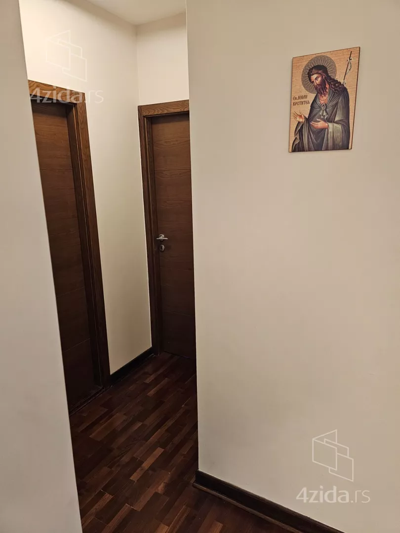 - Opremljenost: Polunamešteno - internet, klima, kuhinjski elementi, sudo mašina, frižider, šporet, rerna, ugradni plakar