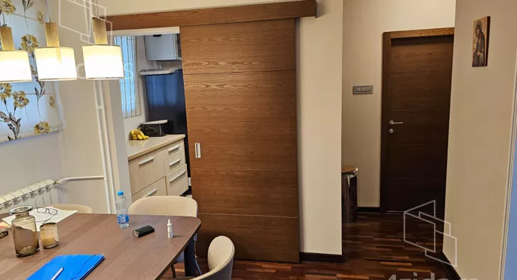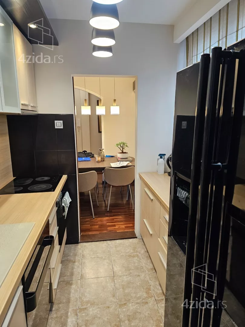 Stan je kvalitetno renoviran,ostaju svi ugradni elementi.Sve ocuvano i u dobrom stanju.Ulaz u zgradu je cist i odrzavan.Hodnici zgrade su prostrani i sa prirodnom ventilacijom-prozorima,puni svetla.