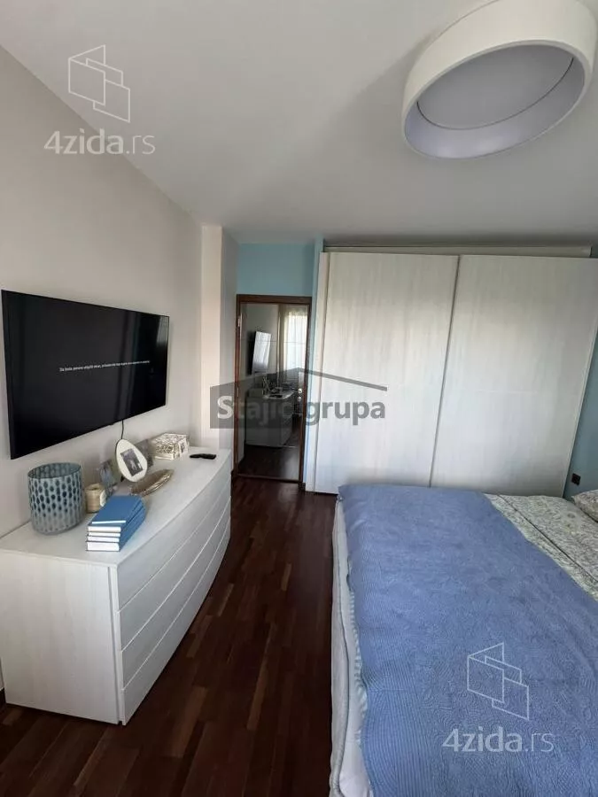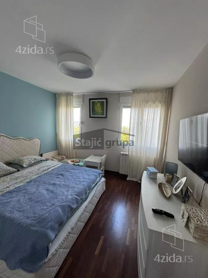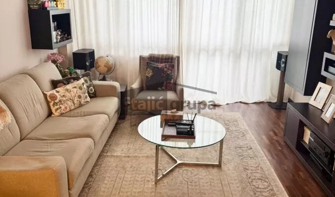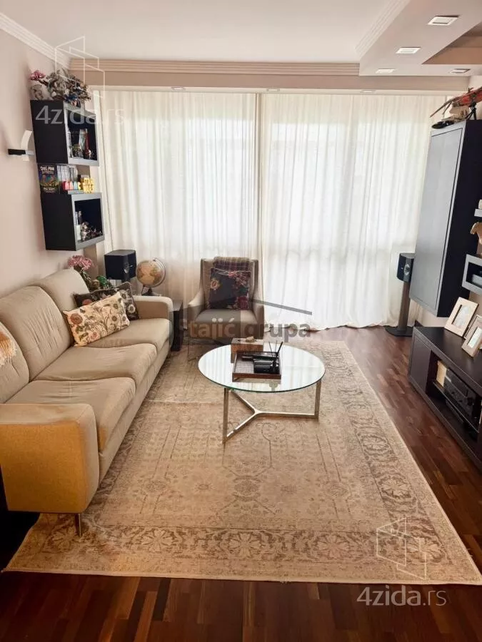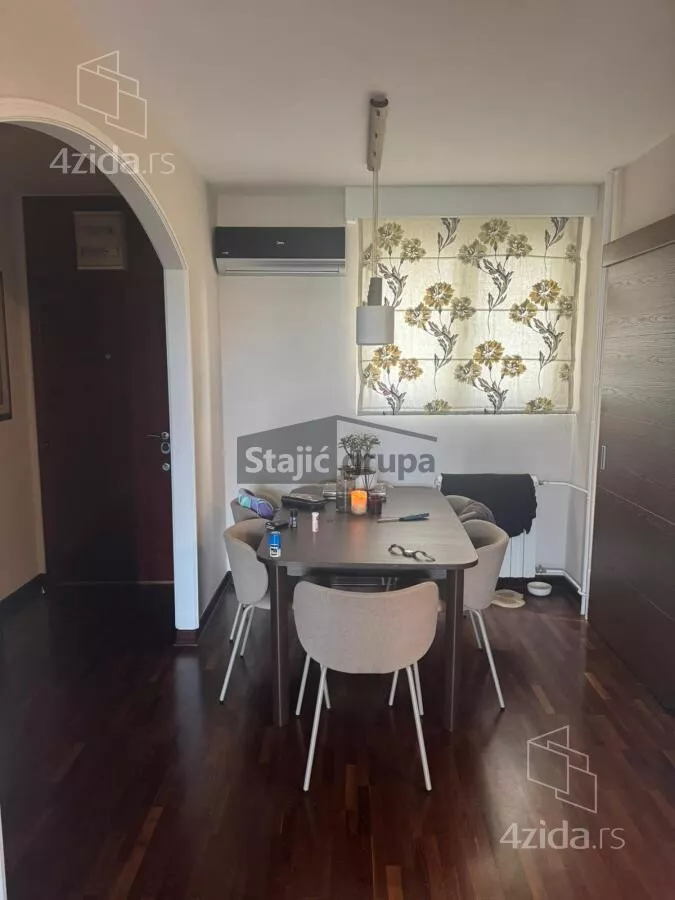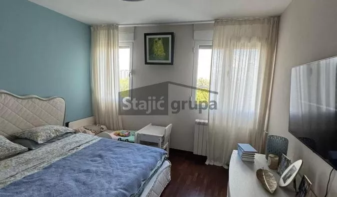 Prodaje se moderan, kompletno renoviran stan, korisne površine 62m2, na petom spratu od osam, u useljivoj zgradi sa video nadzorom i dva ulaza. Sastoji se od prostranog dnevnog boravka sa trpezarijom, kuhinje sa ostavom, spavaće sobe, kupatila i terase.