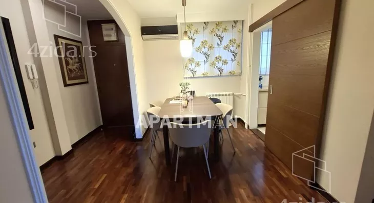 U bloku 70A, jednom od najtraženijih savskih blokova nalazi se ovaj moderno opremljen, kvalitetno renoviran dvosoban stan. Dominantna nota je komfor i udobnost i utisak luksuza sa pažljivo osmišljenim detaljima. U stanu ostaje kuhinja i garderobni ormari prema dogovoru sa vlasnikom. Prostorije: antre, trpezarija, kuhinja sa ostavom, dnevna soba, spavaća soba, kupatilo i terasa. Poseduje pripadajući podrum. Uknjižen je na 62m² na stvarnog vlasnika, te je pogodan za kupovinu iz sredstava kredita. Zgrada je uredna, poseduje video nadzor, dva odlično održavana lifta i okružena je bogatim zalenilom, u prelepom ambijentu pored reke. Kontakt telefon 060... (prikaži broj telefona) . Hvala Vam na pregledu oglasa. Broj agencije u Registru posrednika 1347. Mapa je informativnog karaktera, ne prikazuje tačnu lokaciju nekretnine. Agencijska provizija 2%