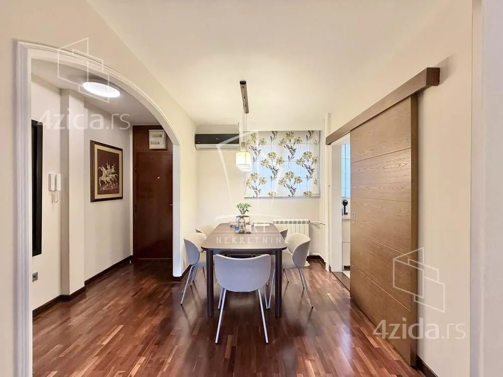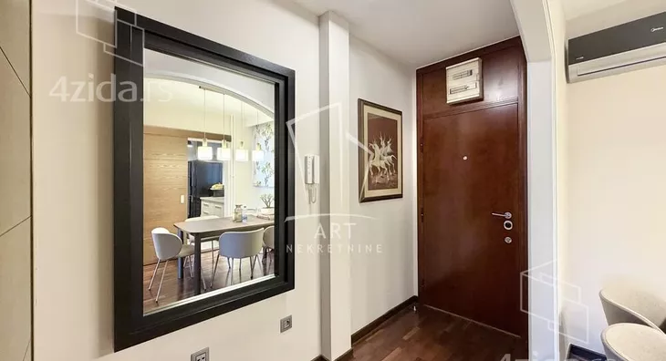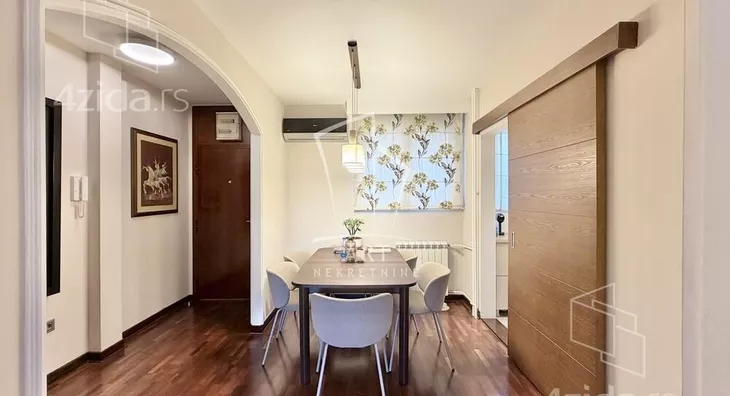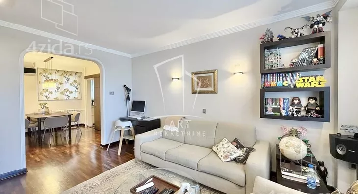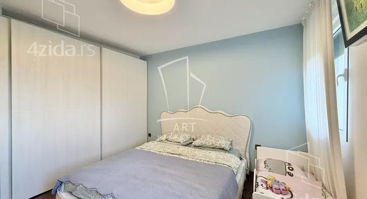 Prodajemo luksuzan, moderno opremljen i kompletno renoviran dvosoban stan. Stan se sastoji od ulaznog hodnika, dnevne sobe spojene sa trpezarijskim delom, odvojene kuhinje sa ostavom, spavaće sobe, kupatila i prostrane lodje. Sve instalacije u stanu su zamenjene novim a parket je hoblovan u avgustu. Optički kabl je sproveden kroz ceo stan. Kamere se nalaze na ulazu u zgradu kao i ispred samih vrata stana. Vrata su Bosalova, stavljeni su novi radijatori. Sve ugradno ostaje u stanu osim ormana u spavaćoj sobi. Stan je renoviran najkvalitetnijim materijalima i odmah je useljiv. Istočno je orijentisan i jako svetao. Poseduje i svoj podrum koji ima oko 2,3m2. Ima i vešernicu koja se nalazi na istom spratu koja je zajednička i pripada stanovima koji se nalaze na tom spratu. U neposrednoj blizini je Tc Delta City, kao i škola, vrtići, prodavnice, pijaca, Savsko šetalište. Parking ispred zgrade nije zoniran. Za svaku preporuku. Agencijska provizija 2%. Agent: Agent: Jelena Momirov, broj licence 5463 "Art nekretnine" d.o.o. Beograd Reg. br.339 011... (prikaži broj telefona) MJ06 .