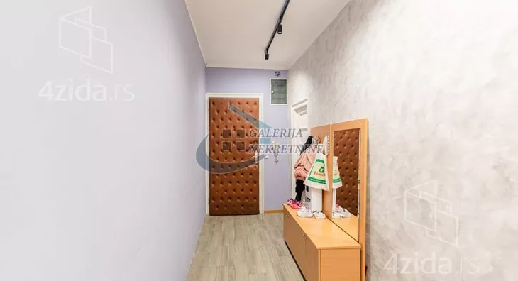 Uknjižen na 56m2, po rečima vlasnika stana ukupna površina merena sa lođom iznosi oko 58m2.