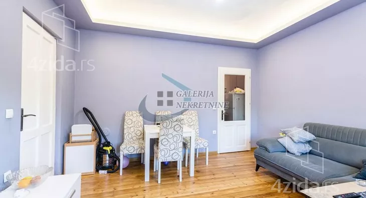U prilici smo da vam ponudimo funkcionalnu dvoiposobnu nepokretnost na prvom spratu dvospratne održavane zgrade, građene četrdesetih godina prošlog veka. U pitanju je manji objekat sa malim brojem stanova, dobro održavan, sa novom termo fasadom. Stan je trostrano orijentisan istok-jug-zapad, visine plafona oko 3 metra. Savršenog rasporeda prostorija i maksimalno iskorišćene kvadrature jer se iz hodnika se ulazi u sve prostorije. Sobe su komotnih dimenzija, trpezarija i dnevni boravak su spojeni u celinu, kuhinja je odvojena i ima prirodnu ventilaciju. Orijentacija stana pruža izobilje direktne dnevne svetlosti. Renoviran pre par godina nakon čega je pedantno održavan i očuvan, sa izmenjenim elektro i vodovodnim instalacijama, laminat u hodniku, u sobama broski pod, urađena unutrašnja izolacija, nova pcv spoljašna stolarija sa roletnama, reparirana unutrašnja drvenarija, stoga nema potrebe za dodatnim većim ulaganjem. Grejanje na struju omogućava racionalizaciju troškova. U zgradi postoji pripadajući podrum. Stanari korište parking u dvorištu zgrade.
