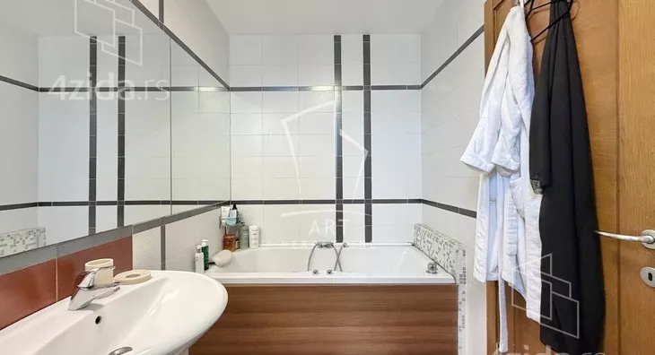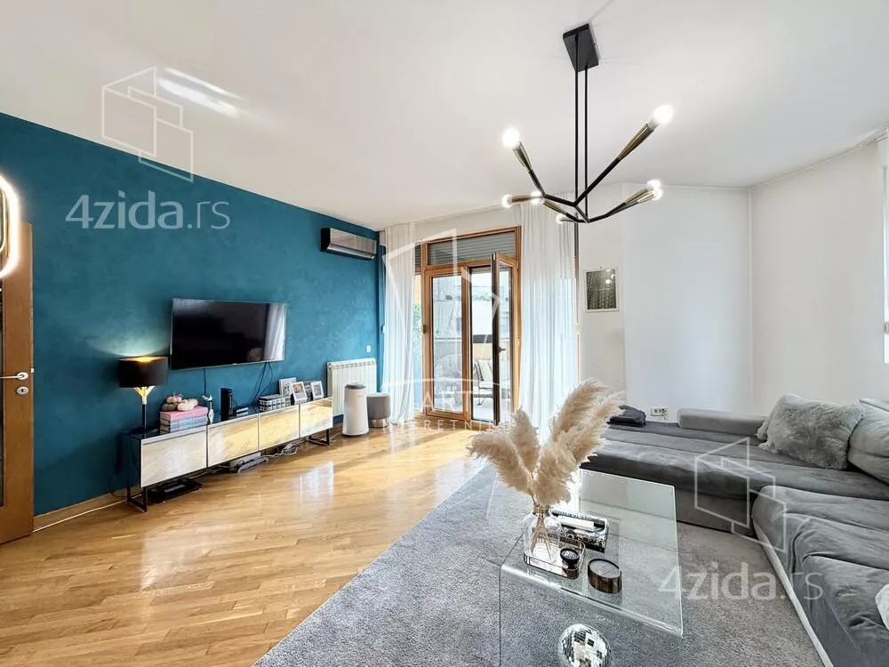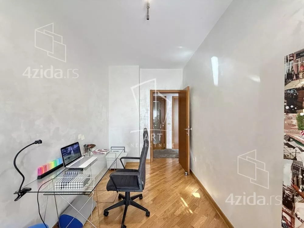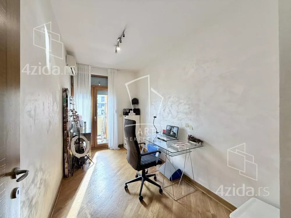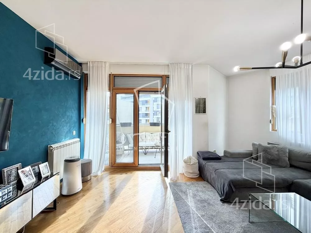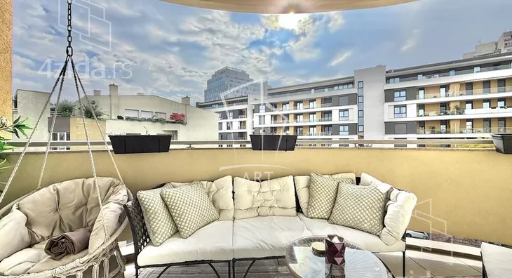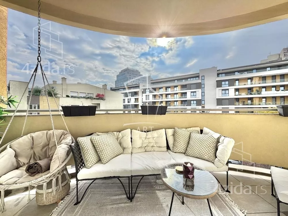 Zgrada iz 2005. godine. Nalazi se u blizini komplexa Central garden. Prostorije: predsoblje, kuhinja sa šankom, dnevna soba sa trpezarijom, kupatilo, vešernica, garderober, 2 spavaće sobe, terasa. Sve sobe izlaze na terasu. Odličan stan. Mogućnost kupovine garažnog mesta - cena: 35000€. Agencijska provizija 2%. Agent: Vladimir Jovanović br. licence 1773 "Art nekretnine" d.o.o. Beograd. Reg. br. 339 011... (prikaži broj telefona) .