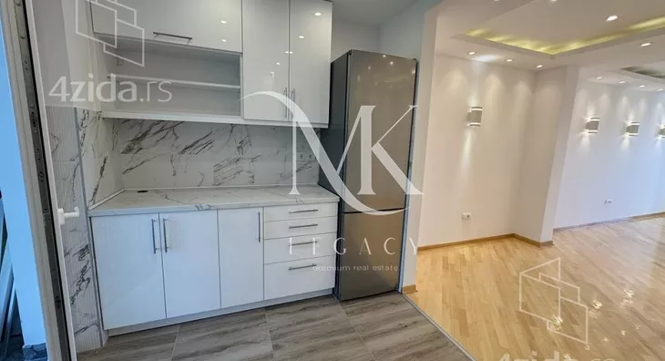 U ponudi je izuzetna nepokretnost, kompletno renovirana najkvalitetnijim materijalima koji se mogu pronaći na našem tržištu. Stan je po strukturi dvosoban uz mogućnost adaptacije i prilagođavanja potrebama novog kupca. Sastoji se od ulaznog hodnika iz koga se ulazi u sve prostorije, master spavaće sobe sa sopstvenim kupatilom, walk-in garderobera, toaleta, kuhinje i dnevno-trpezarijskog dela koji su dvostrano orijentisani i odakle je omogućena komunikacija i izlaz na dve lođe od kojih je jedna zastakljena. Grejanje i hlađenje putem inverter klime, uskoro će biti postavljeni i mermerni radijatori. Od ugrađenih materijala izdvajamo jasenov parket prve klase, PVC šestokomornu stolariju sa ugrađenim komarnicima na svim prozorima, sigurnosna ulazna vrata, Geberit sanitarije, keramika prve klase. U stanu su promenjene kompletne vodovodne i električne instalacije, pa dobijate kompletno nov stan bez ikakve potrebe za daljim ulaganjima. Uknjižen 1/1. Mapa ne pokazuje tačnu lokaciju i položaj nepokretnosti. Agencijska provizija 2%. Za svaku preporuku. Posrednička naknada : 2% od dogovorenog iznosa kupoprodajne cene.