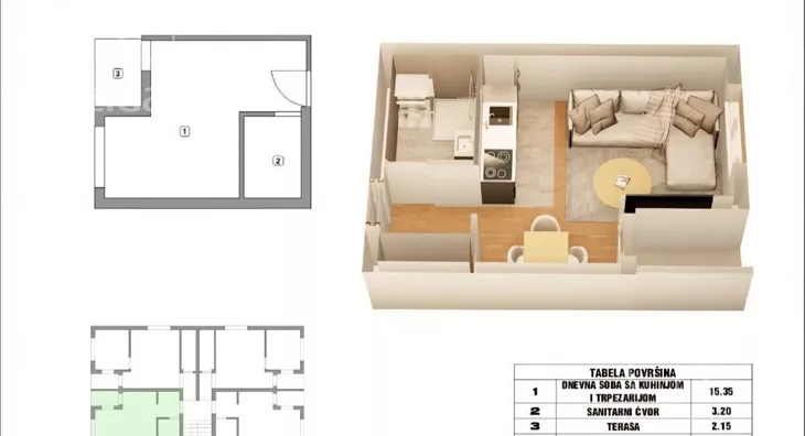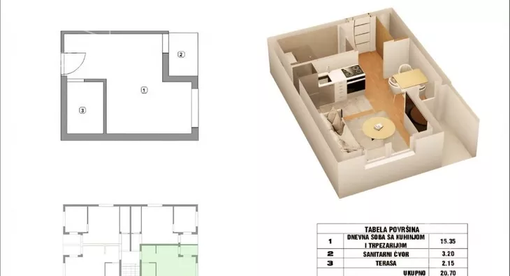 Garsonjera na prodaju, Branko Bjegović, 35.000€, 21m²