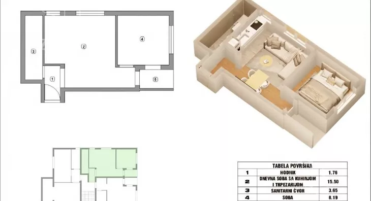 Prodaje se jednoiposoban stan u novogradnji u naselju Branko Bjegović. Površine je 31,15m2, nalazi se na II spratu stambene zgrade bez lifta. Sastoji se iz ulaznog hodnika, dnevnog boravka sa kuhinjom i trpezarijom, spavaće sobe, kupatila i terasa. Zgrada se gradi u skladu sa zahtevima energetske efikasnosti i od kvalitetnih materijala: na podu će biti postavljen laminat, stolarija će biti PVC profila, u kupatilu će biti postavljena kvalitetna sanitarija i keramika, grejanje će biti na struju. Postoji mogućnost kupovine parking mesta. Nalazi se u mirnijem delu grada i u neposrednoj blizini su vrtić, škola, autobuske linije i ima sve što Vam je potrebno za kvalitan i komforan život. Hvala Vam što ste pogledali oglas. Za više informacija o ovoj ili drugim nekretninama i zakazivanje razgledanja kontaktirajte agenta na broj telefona iz oglasa (poziv, sms, viber) ili putem e-maila. Kompletnu ponudu dostupnih nekretnina možete pronaći na našem sajtu. Agencija Proagent nekretnine je upisana u Registru posrednika pod brojem: 940.