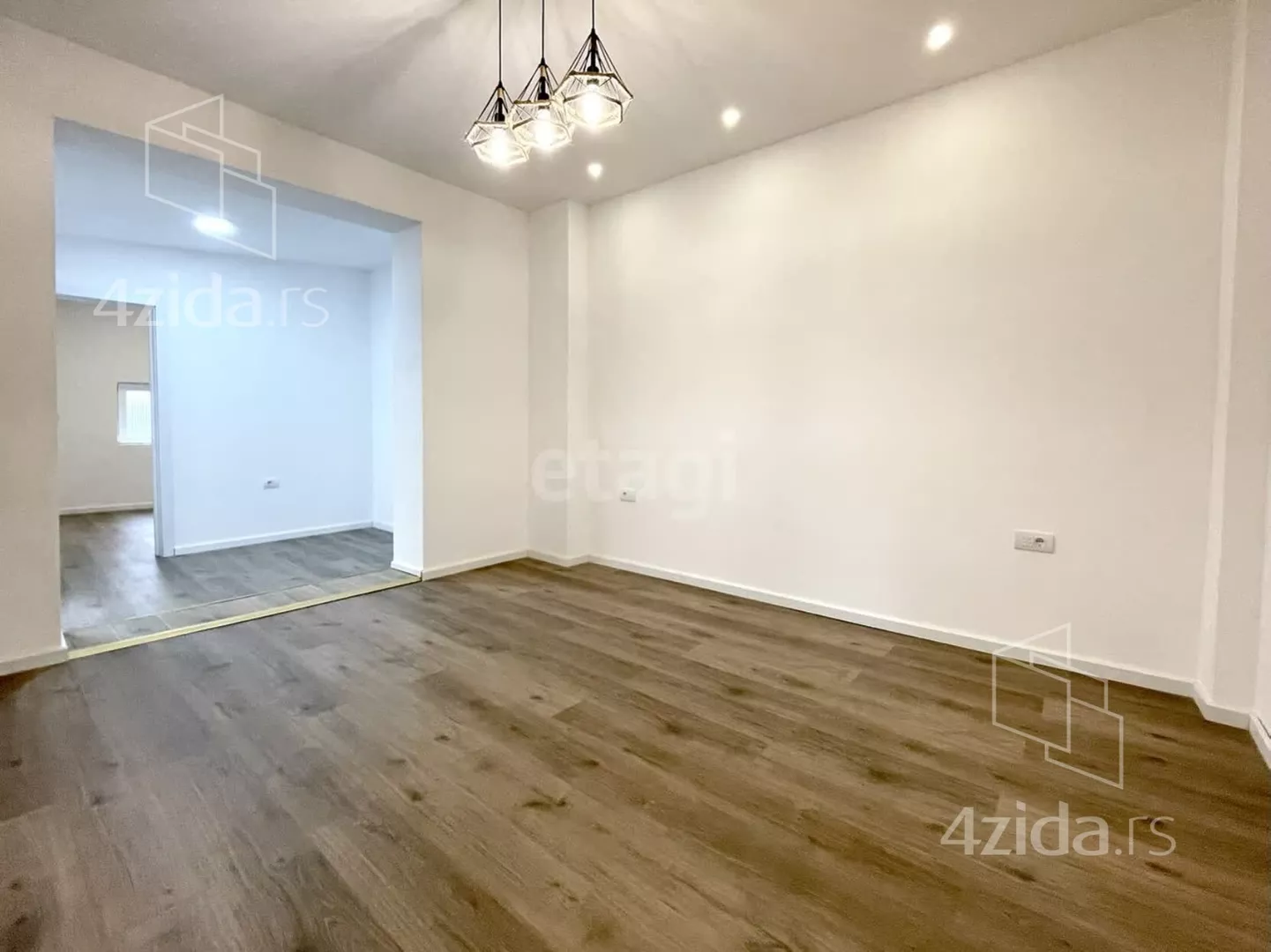 Kompletno je renoviran – vodovodne cevi, strujne instalacije promenjene, sprovedena ventilacija u kupatilu, postavljena PVC stolarija, nov laminat, pločice...