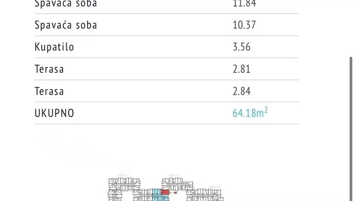- Prostorije: kupatilo, kuhinja, terase (2)