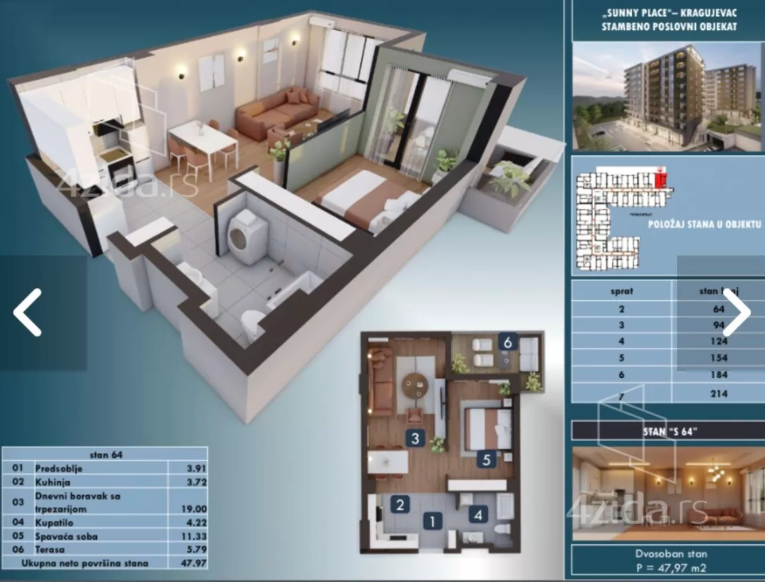 Dvosoban stan na prodaju, Bubanj, 79.150€, 48m²